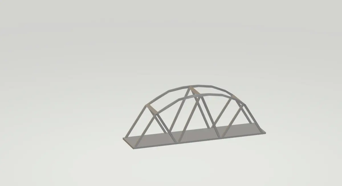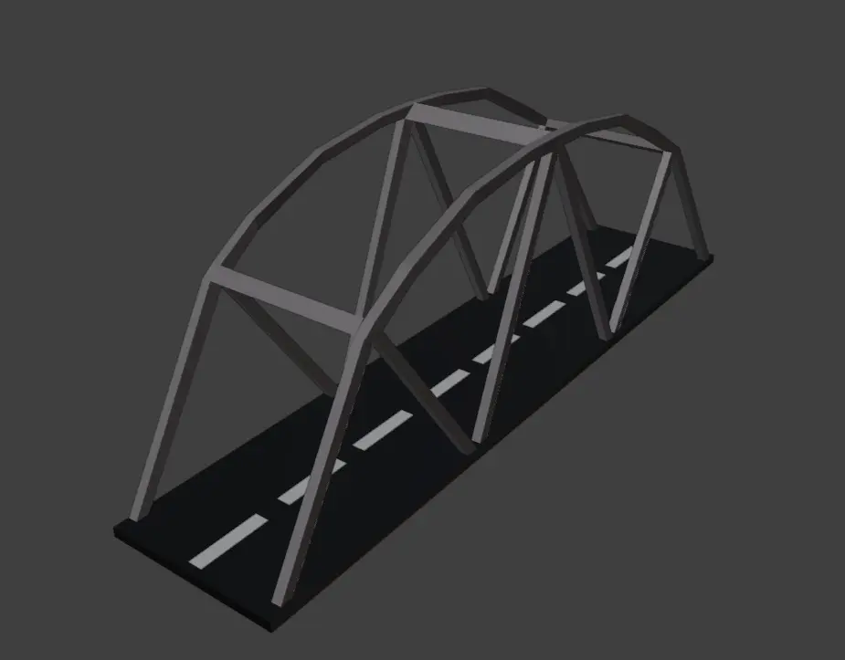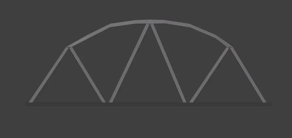 This 3D model represents a low poly arched metal bridge, ideal for isometric games. The structure is composed of interconnected triangular beams, forming a light and modern arch, providing a minimalist design optimized for performance.