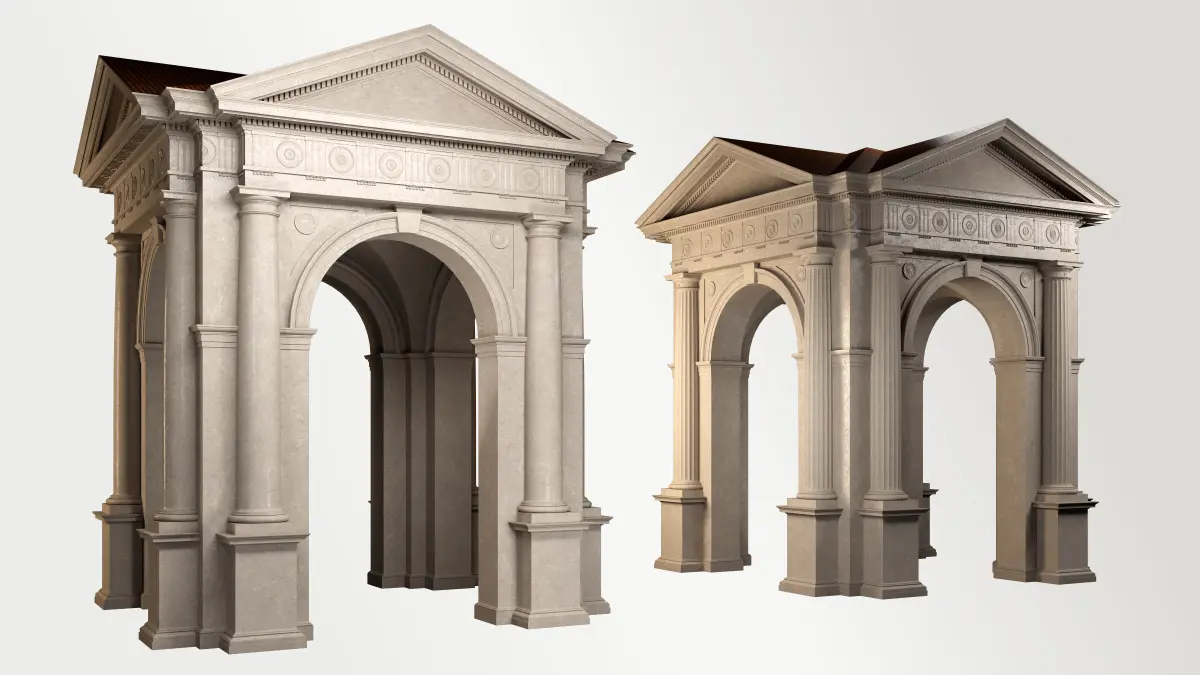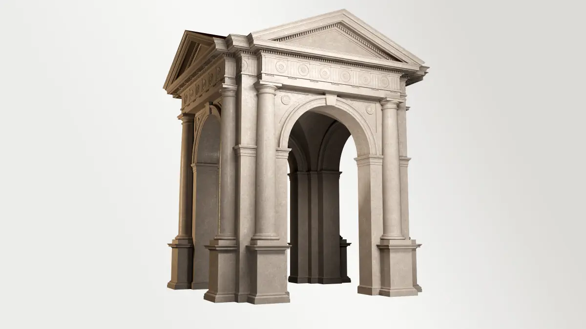 Arched portico in Doric Denticulated column with 3/4 with and entablature** Doric Order** on Vignola. + fluting Column *