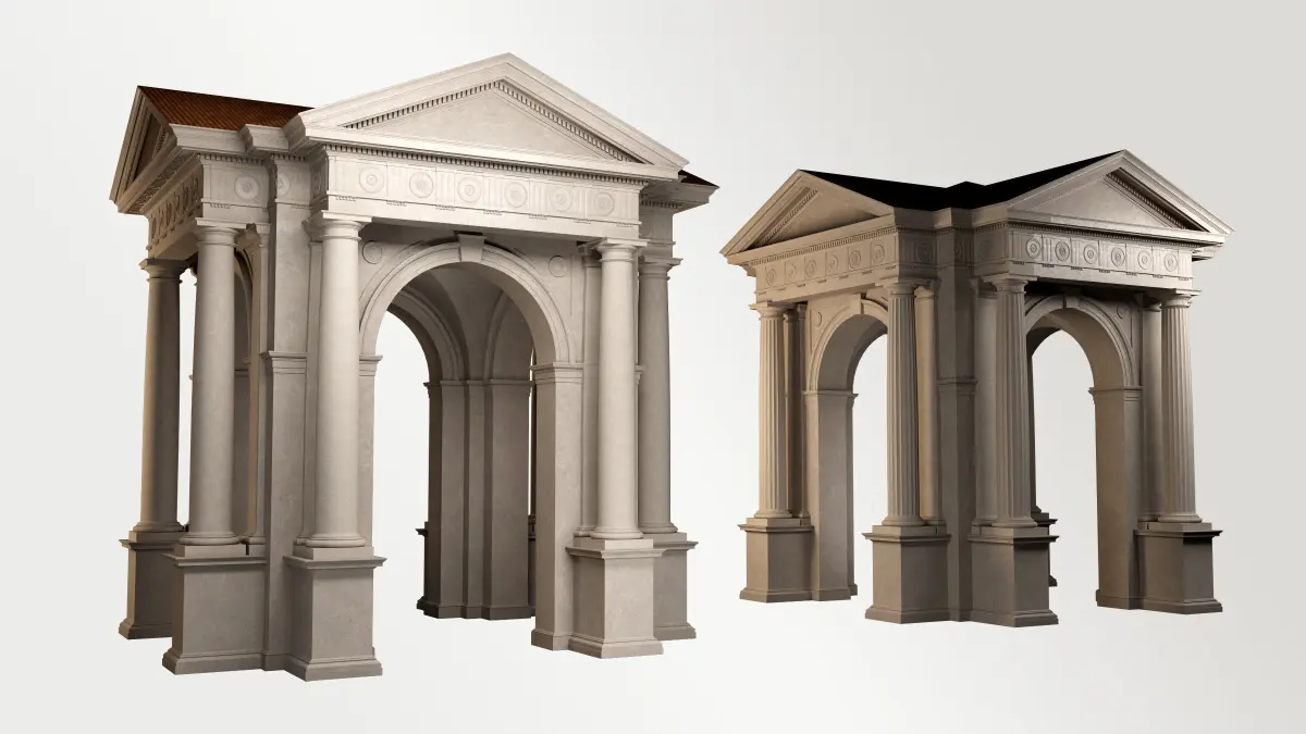 Arched portico in Doric Denticulated column with and entablature** Doric Order** on Vignola. + fluting Column *
