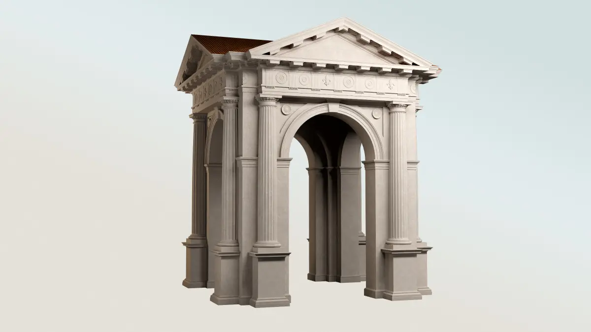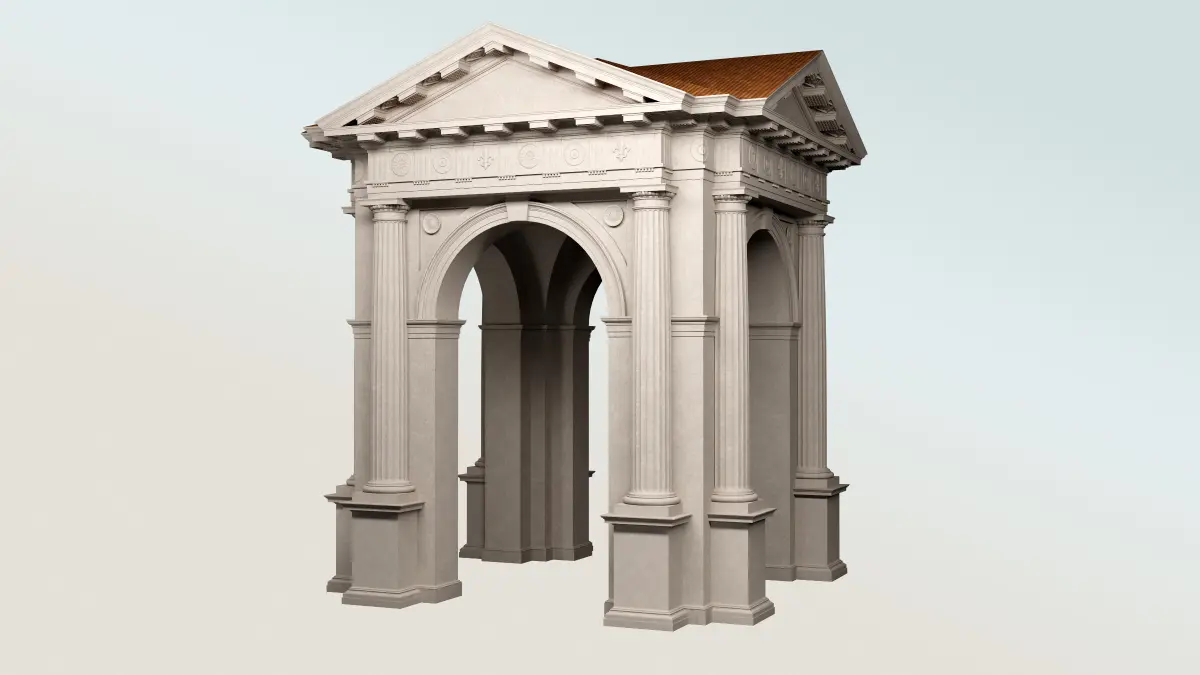 Arched portico in Doric mutulary 3/4 column. gazebo. Doric Order on Vignola.