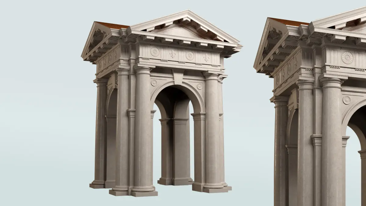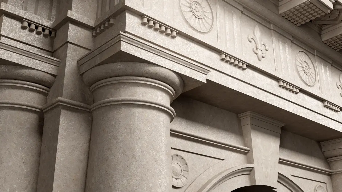 The order is constructed according to the module, adhering to all the rules and proportions of classical architecture. The column includes meticulously crafted entasis.