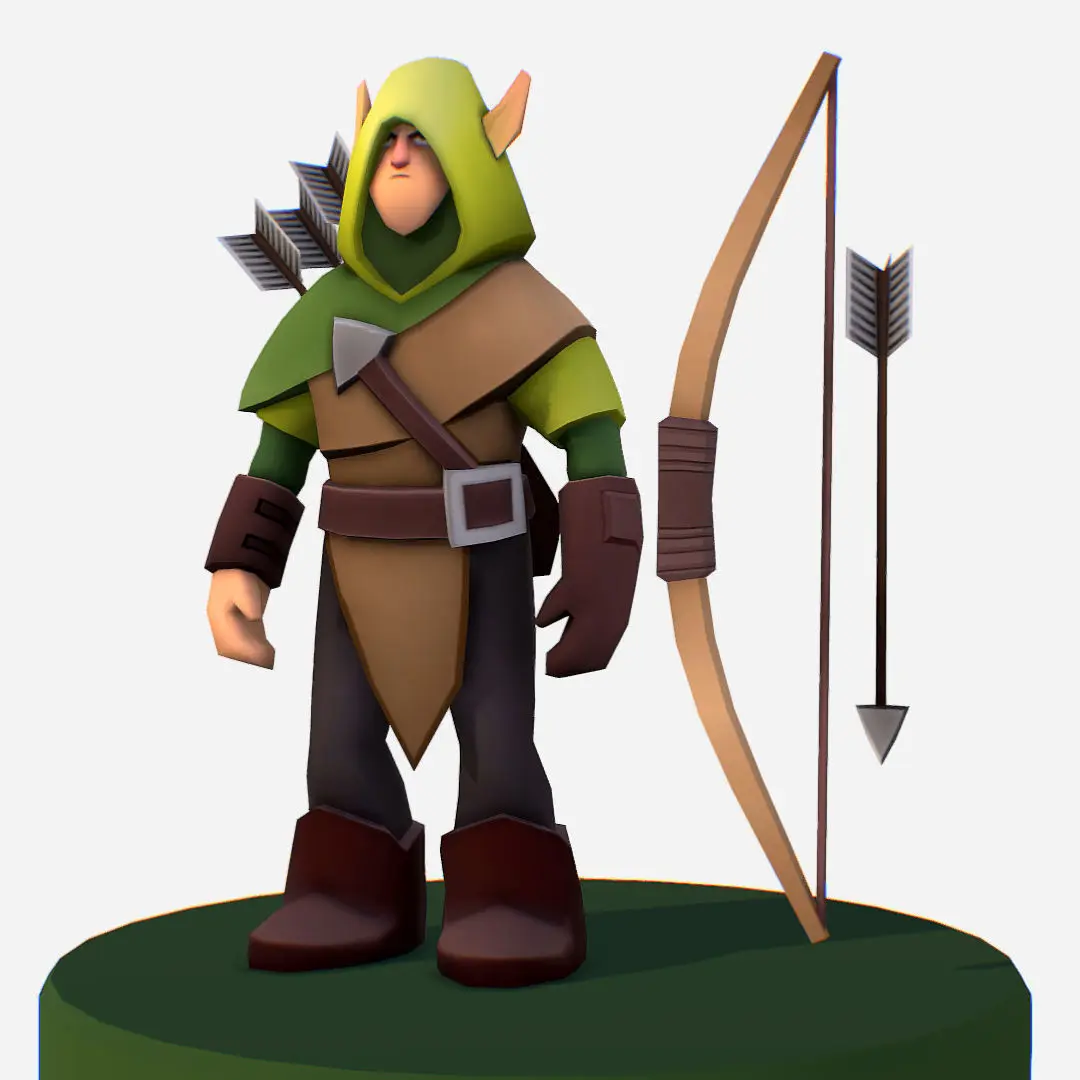 Archer Scout Handpaint Cartoon MMO rpg Character Low-poly 3D model