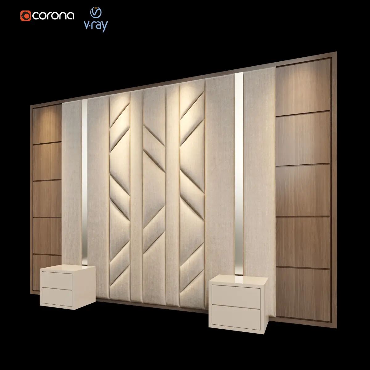 Combined wall panels in tinted American walnut and velvet veneer.Width / Length: 450 cmDepth: 6 cmHeight: 307 cmMaterial: natural wood, velvet, metalColor: brass, beige, brown... ... ... ... ... ... ... ... ... ... ... ... ... ... ... ... .. ... ... ... ... ... ... ...Export File: FBXVray version: V-Ray 4.10.02Corona version: 5... ... ... ... ... ... ... ... ... ... ... ... ... ... ... ... .. ... ... ... ... ... ... ...Units in centimeter.No third-party plugin or script required.... ... ... ... ... ... ... ... ... ... ... ... ... ... ... ... .. ... ... ... ... ... ... ...feel free to use it for your projects.