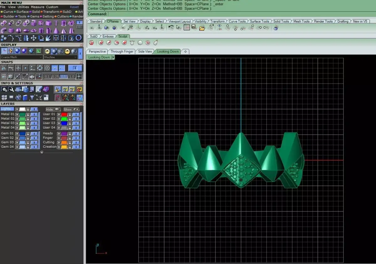 This gold ring features a bold architectural design composed of sharp geometric volumes combined with precisely integrated stone-set surfaces, creating a powerful and luxurious visual statement.The model is engineered with clean topology, accurate stone seating, and balanced wall thickness to ensure stable and reliable performance in professional jewelry manufacturing.All production and manufacturing tests have been successfully completed, confirming that the design is technically sound and free of any defects.The ring is fully prepared for casting, stone setting, and high-quality jewelry production.