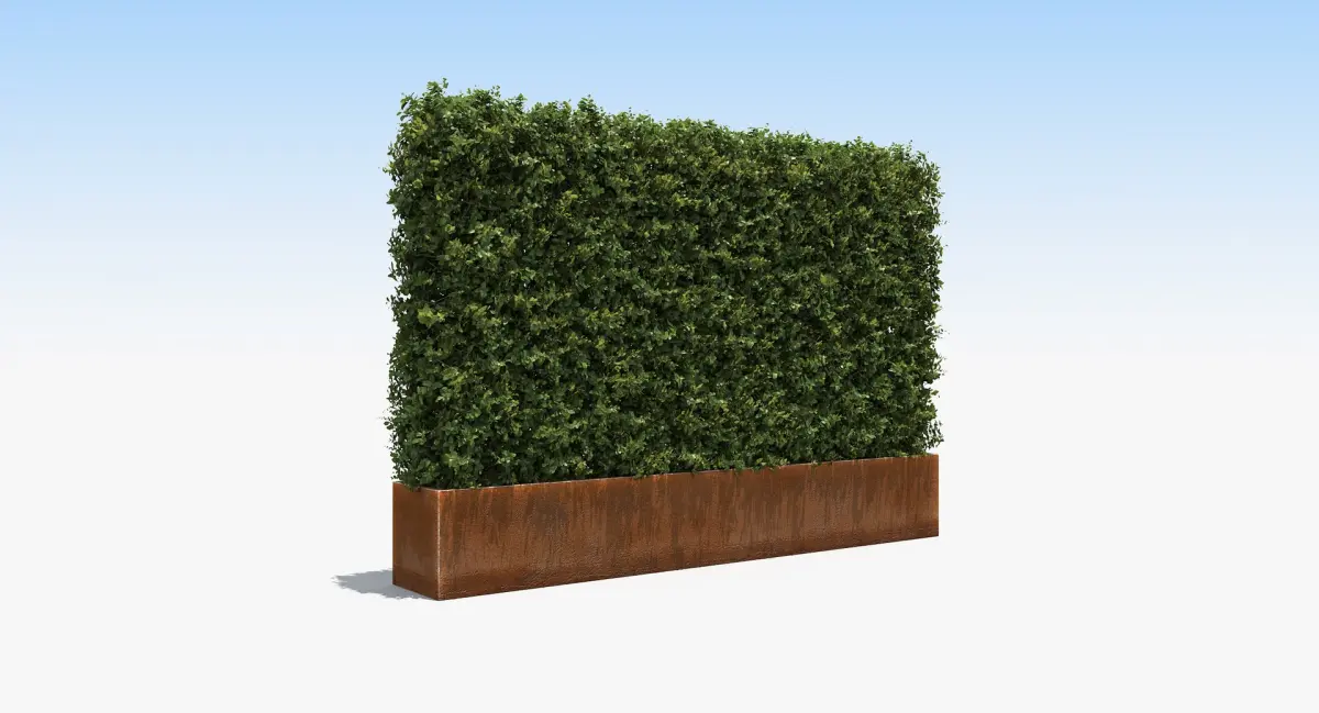 This collection contains 9 boxwood hedge and topiary models in various configurations including rectangular hedges, spherical topiaries, and columnar forms. Models feature different planter types (corten steel, concrete) and freestanding variations. Geometry includes detailed foliage suitable for mid-range visualization work. File formats and poly counts vary per model. All models include texture maps. Designed for architectural visualization and landscape rendering applications. All models quad-based where possible, UV-unwrapped, detailed textures, real-world scale. Native format: 3ds Max + V-Ray