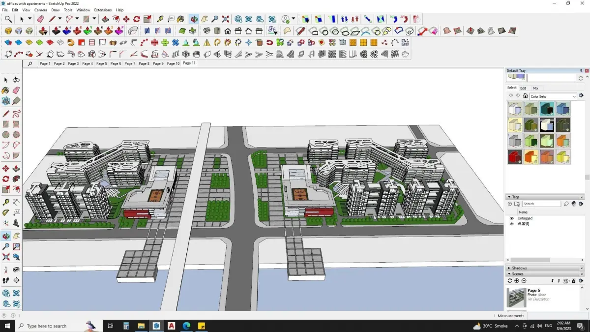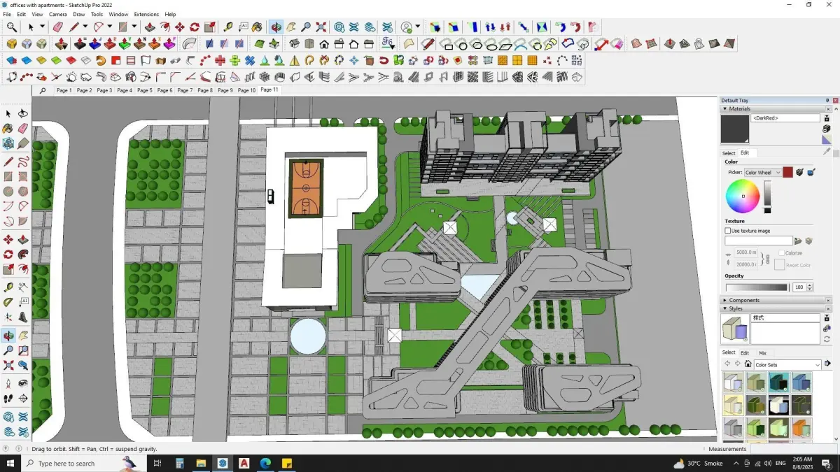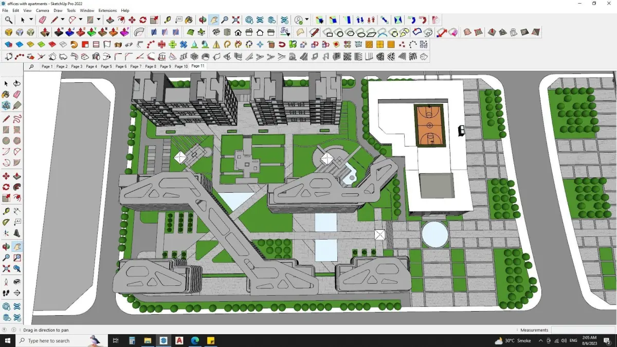 Sketchup model includesModern office buildingscommercial buildingsgood parking spacecontemporary design roof topbasketball court at roof topcentral park