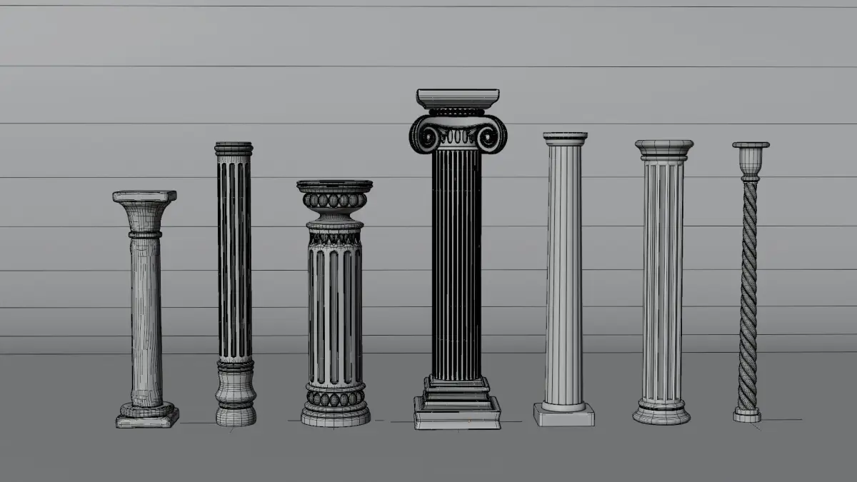 - Extensive File Formats: Easily import your columns into any 3D software with included DAE, FBX, OBJ, and native Blend files.