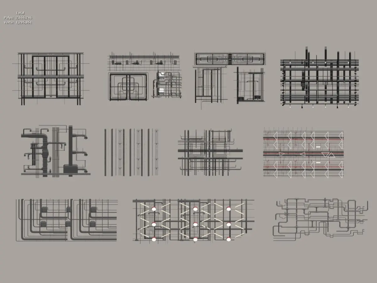 High - detail 3D model set of architectural MEP (mechanical, electrical, plumbing) piping and duct systems. Ideal for building design, construction simulation, and BIM projects. Compatible with major 3D software. Perfect for architects, engineers, and interior designers.