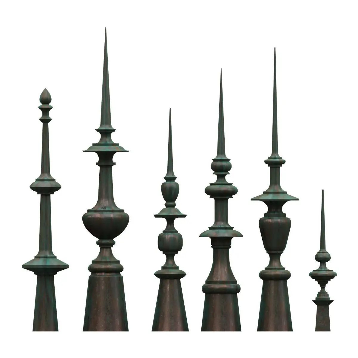 Antique Zinc Architecural Finials - Roof Decorations 0098 7-12 From The Book 1890 Martin J., Chenneviere L. - Ornements Pour Le Bâtiment: travaux d'art: zinc, plomb, cuivre, tole: album.