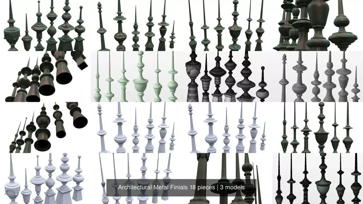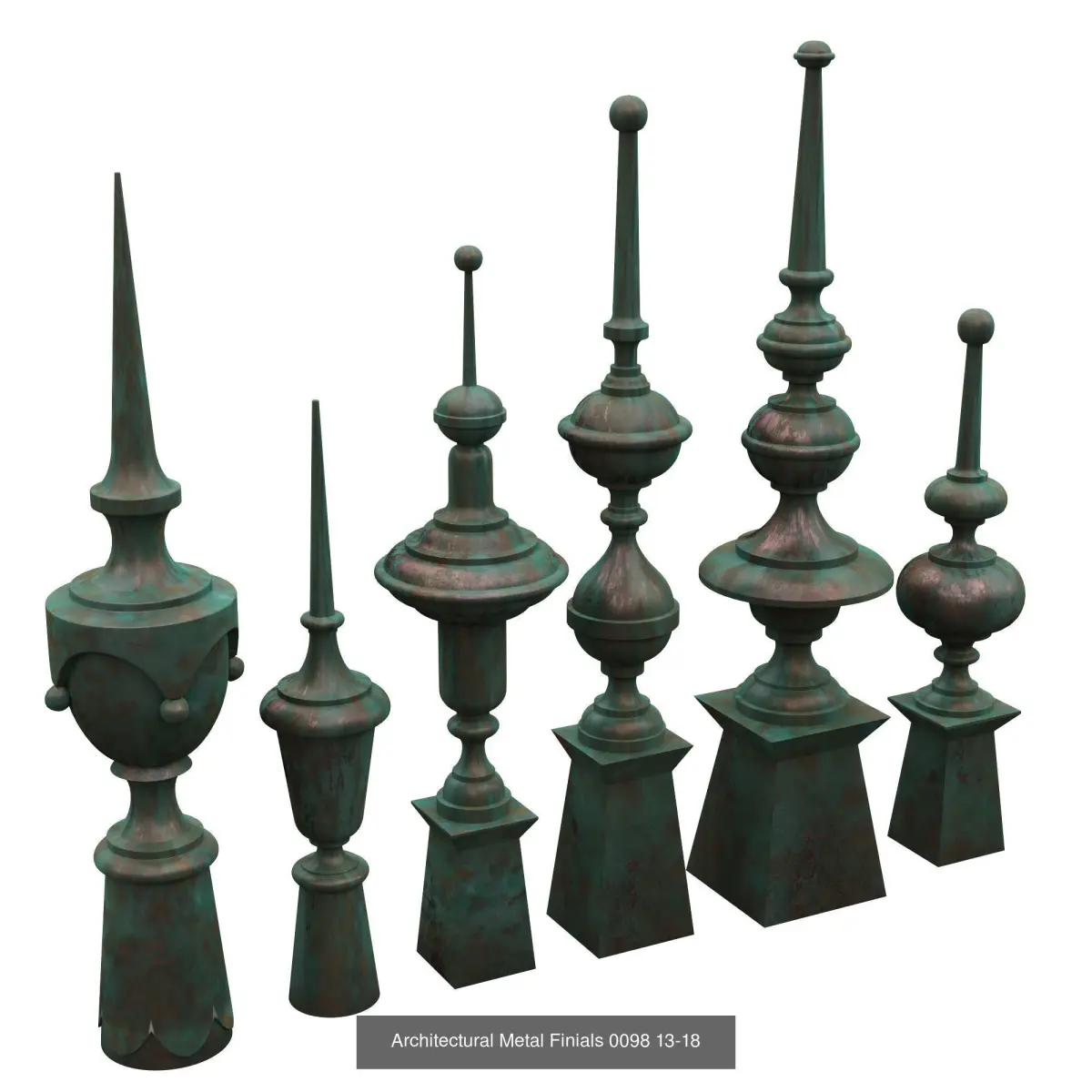 Antique Zinc Architecural Finials - Roof Decorations Plate 0098 From The Book 1890 Martin J., Chenneviere L. - Ornements Pour Le Bâtiment: travaux d'art: zinc, plomb, cuivre, tole: album.