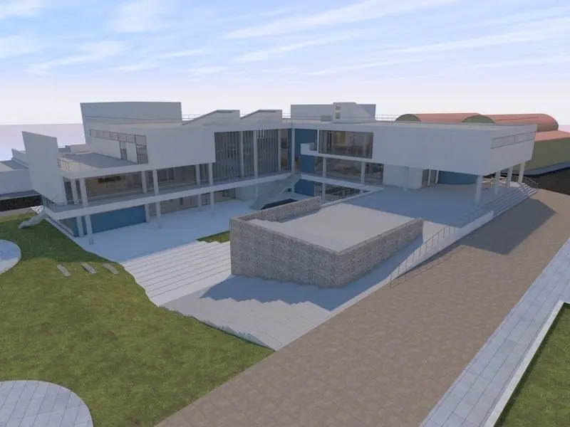 It provides: approx. 900m² of exhibition space, the reception with the cloakroom, 2 coffeeshops, a giftshop, a research library, the staff offices, an auditorium, room for educational programms, underground garage, 320m² of storage space and of course WC facilities. It's easily adaptable and there are some custom-made assets that can be easily re-used for other projects. As already mentioned, the zip file includes the pln file for Archicad, the dwg files for Autocad and the fbx and obj files.