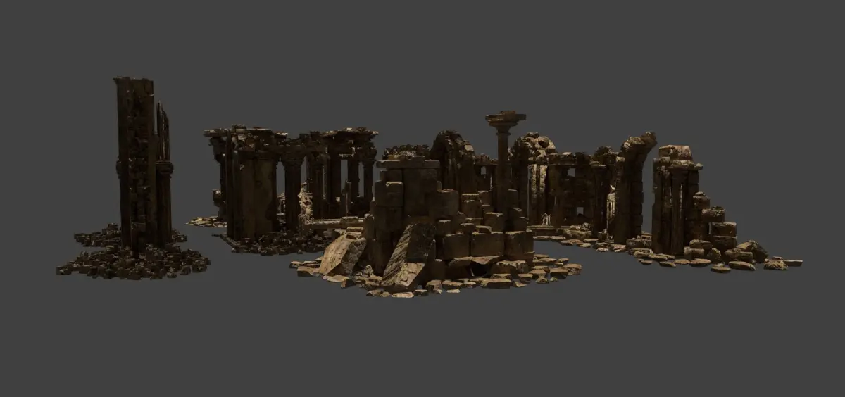 Architectural ruins. These models are suitable for creating beautiful paintings, as well as as elements of your game landscape. These models represent destroyed buildings and structures that are ideal as an addition to any type of location. If desired, you can change the material of the models, both in Blender and in game engines.