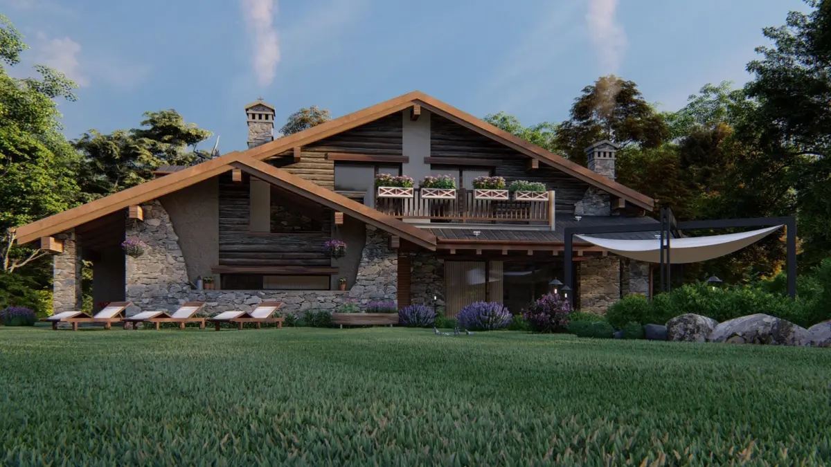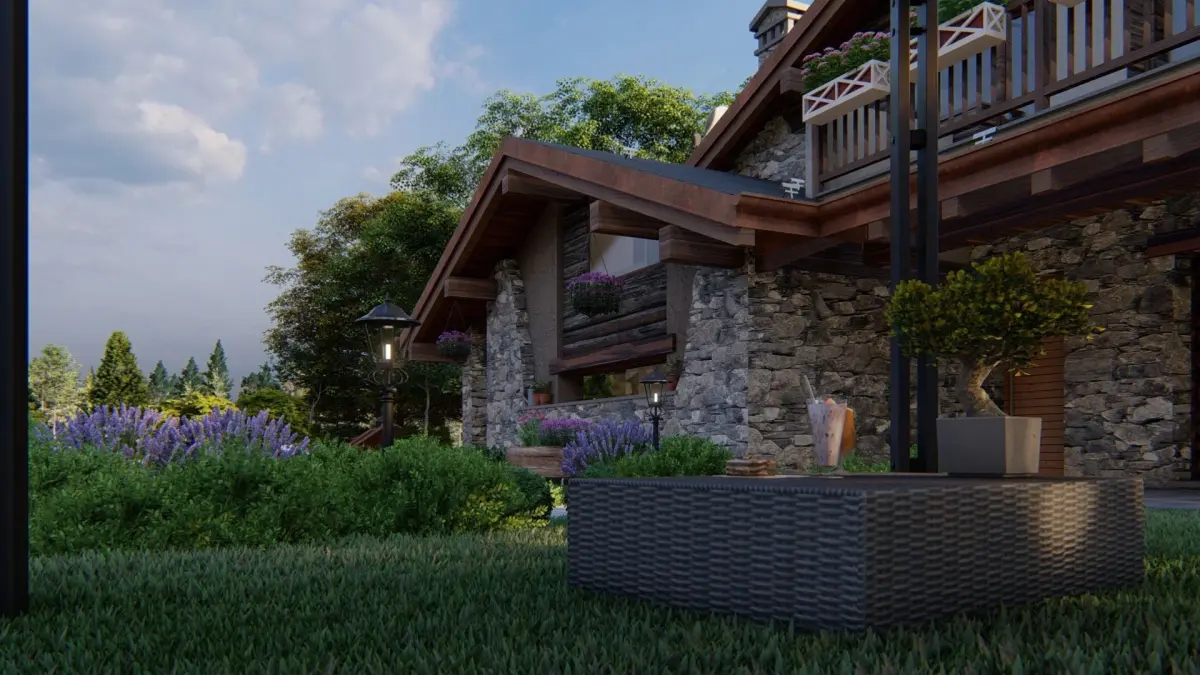 Realization of external render, 3d model complete with everything. A mountain house surrounded by greenery, a typical alpine house where vegetation, soft colors and nature are the masters.Model design in real scale,File sketchup 2017 (Vegetation, flowers, plants, external decors made with Lumion 10.5)File Lumion 10.5Set materials LumionPreset Lumion File ColladaTexture folder