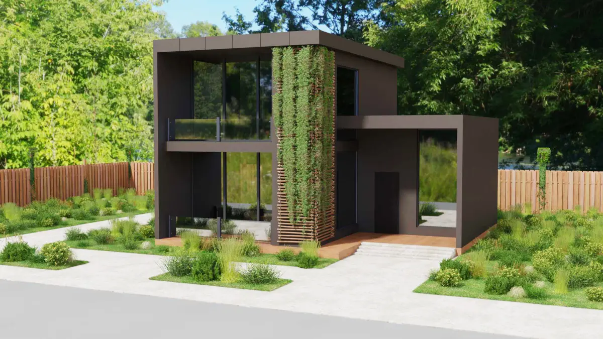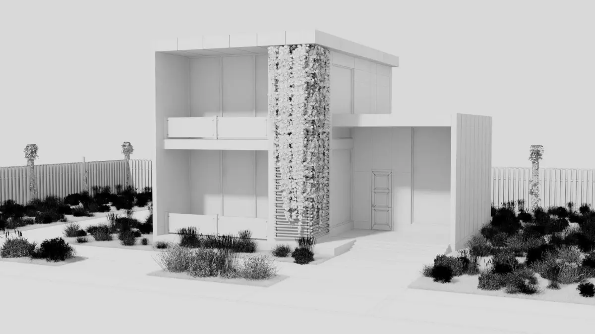 3D model of an apartment in a country house.It has simple geometry and also has physical vegetation in the yard.