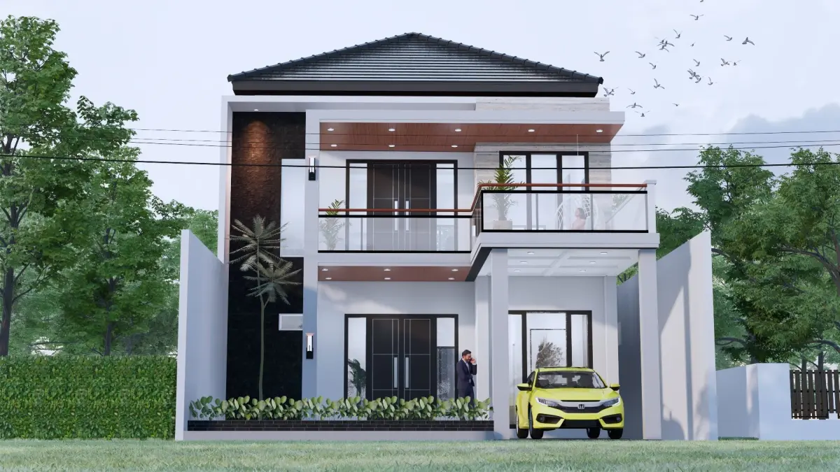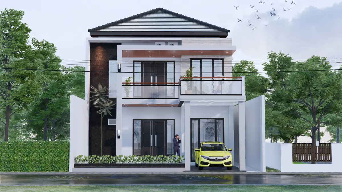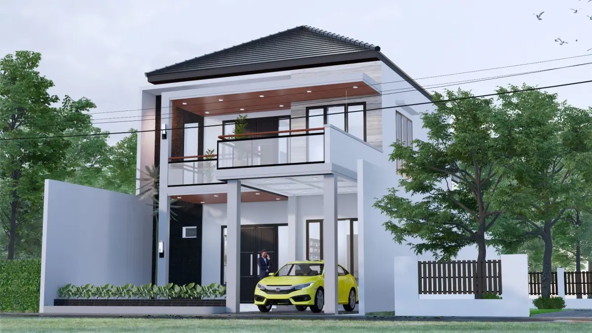 Architecture Minimalist Modern 2 Floor House full Interior bedroom designkitchen designcarportguestroom designbathroom designliving room designshop drawingtexturefull lightingedit ableready to render