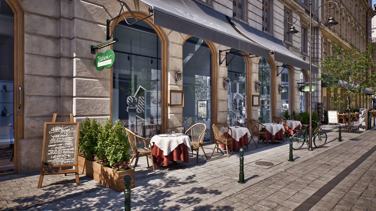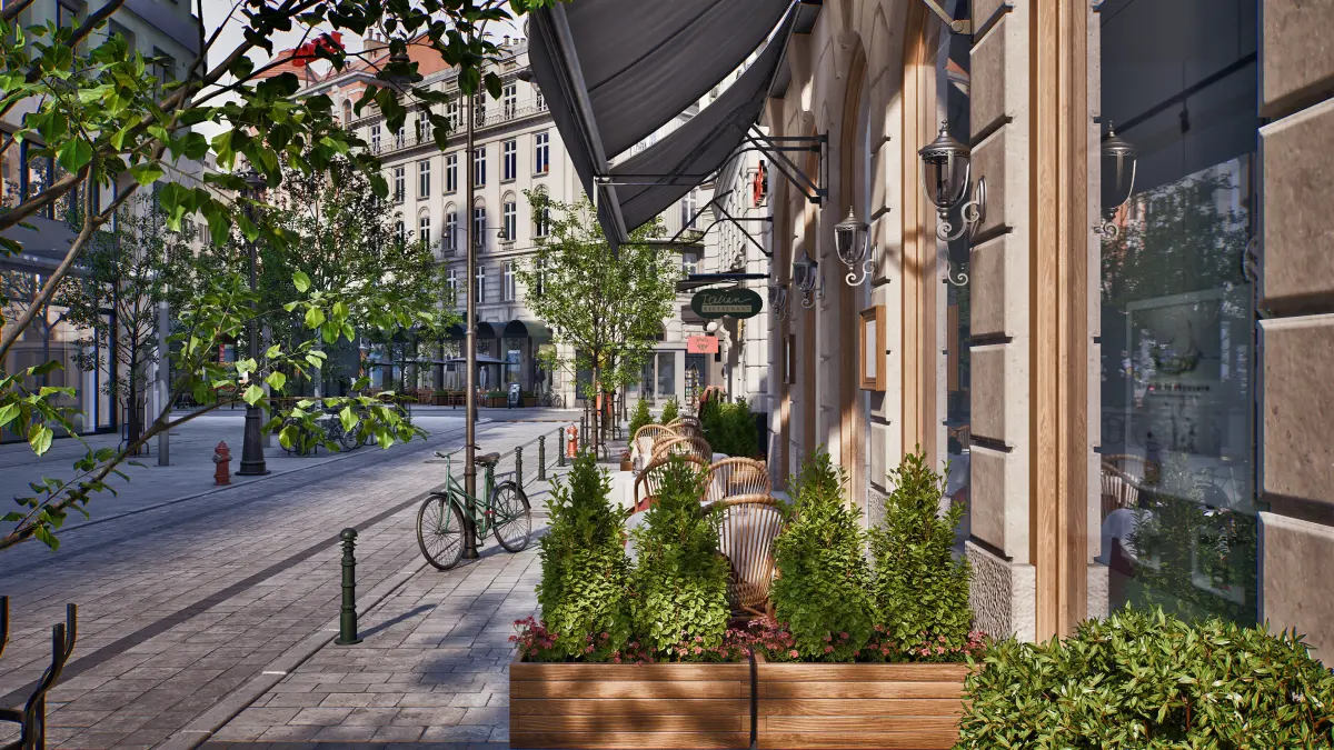 Archmodels for UE5 vol. 8 includes a big city district scene and 50 complete city buildings - a huge set from which you can create an entire city district. We also included here several hundred smaller elements, such as trees, road signs, restaurant gardens, lamp posts, kiosks, bus stops, bicycles, etc. These elements give city credibility and life.