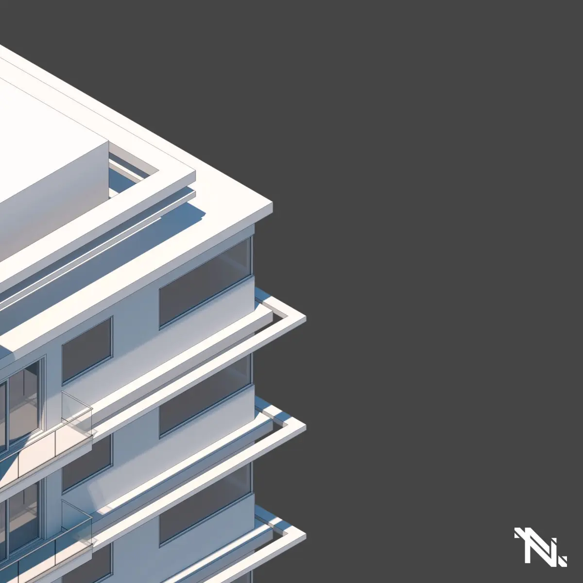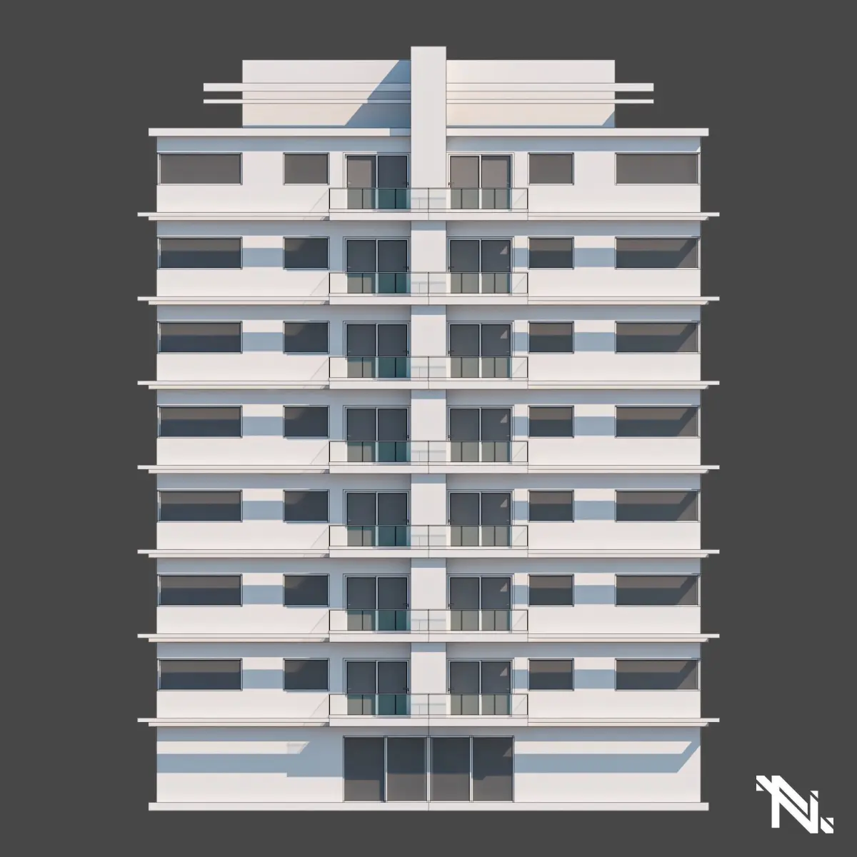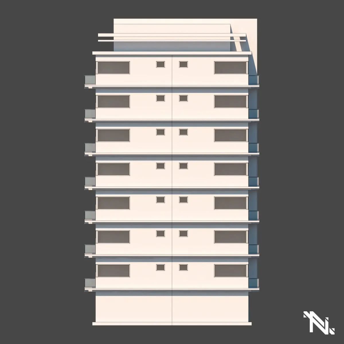 Modeling a modern building for composing environments. The idea behind the construction was to bring harmony to the set through the symmetry of its elements.
