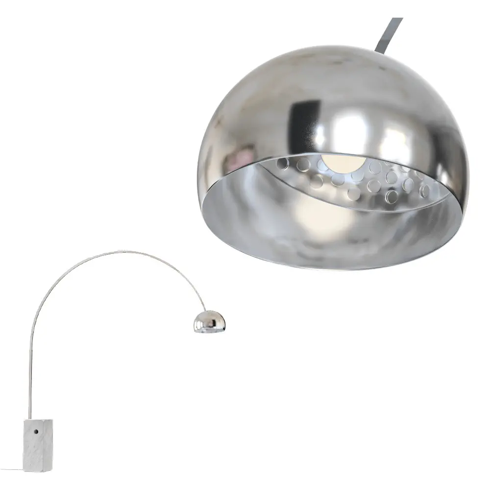 Overview:This is a high-quality 3D model of the iconic Arco Lamp, designed by Achille and Pier Giacomo Castiglioni for Flos. This legendary mid-century floor lamp features a sweeping stainless steel arch, a polished aluminum dome shade, and a solid Carrara marble base—perfectly modeled for high-end visualizations and close-up renders.