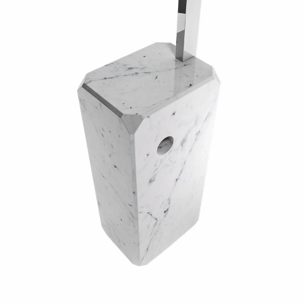 Floor lamp providing direct light. White Carrara marble base. Satin-finish stainless steel telescopic stem. Pressed, polished and zapon-varnished aluminum swiveling and height-adjustable reflector.