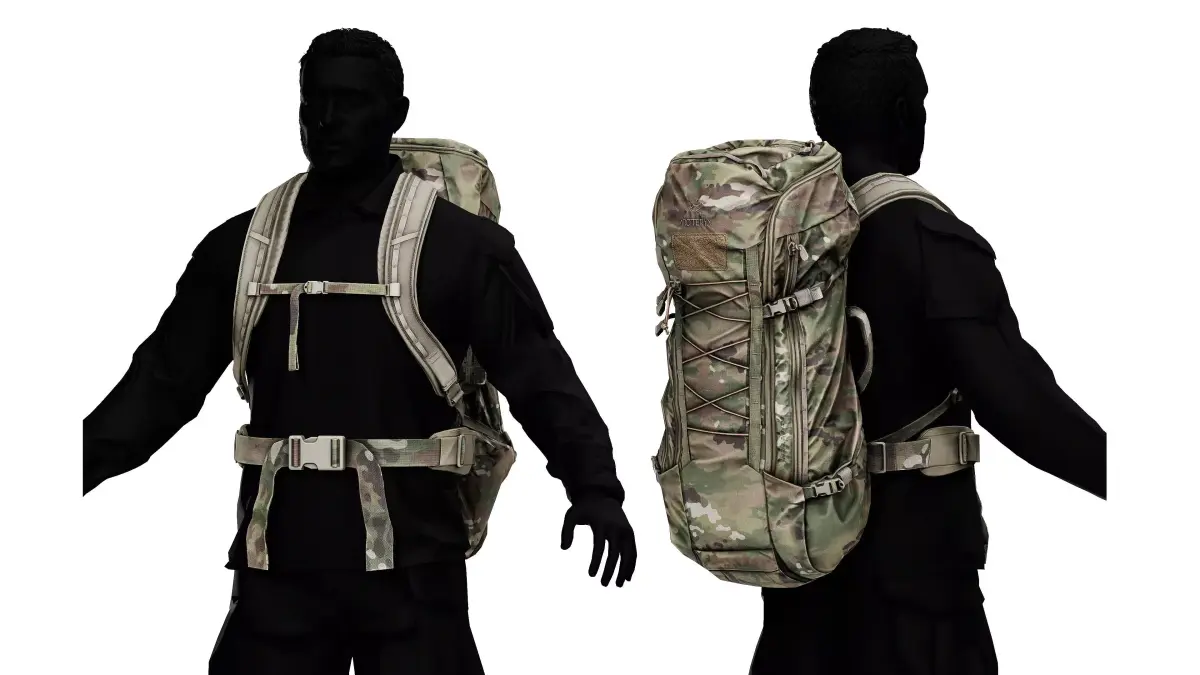 Game-Ready 3D Model inspired by the ARC'TERYX PRO Assault Pack 30, backpack. OCP (Similar to Multicam) and Gray Wolf colors are included. We also included Stitching and ID masks for easy retexturing.