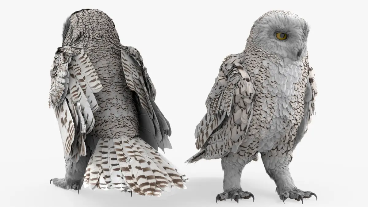 This animation set includes 4 bird animations designed to capture natural locomotion, takeoff and landing, and calm idle observational behavior of a snowy owl. The pack is suitable for cinematic scenes, wildlife projects, games, and simulations.