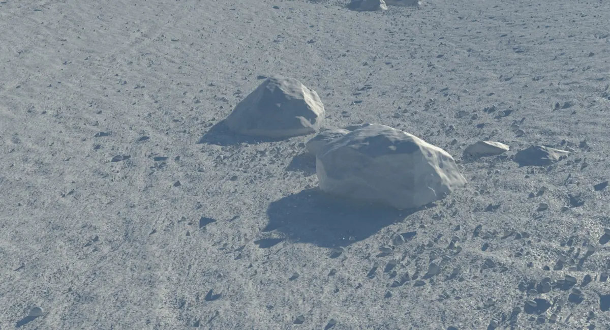 - The ground uses additional V-Ray displacement
