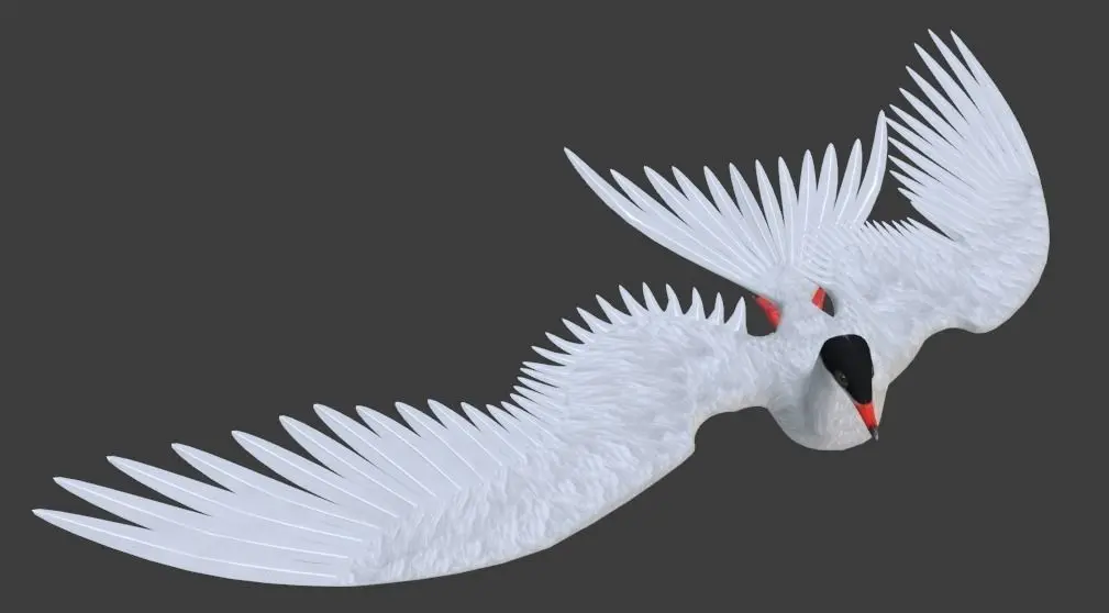 My model of a Arctic Tern bird with 16 animations and poses. In the wild these birds cover the Arctic and sub-Arctic regions of Europe, Asia, and North America. Modeling, rigging and animating were accomplished using Blender. The textures and materials were created using Blender and the graphics editor Paint . net. The textures/materials sized to 4096x4096 and 1024x1024, have layers which can be customized and added with a node system. Unreal assets for the animations & model are avaliable as shown in the first preview image. (The snow map from the preview image is not included).