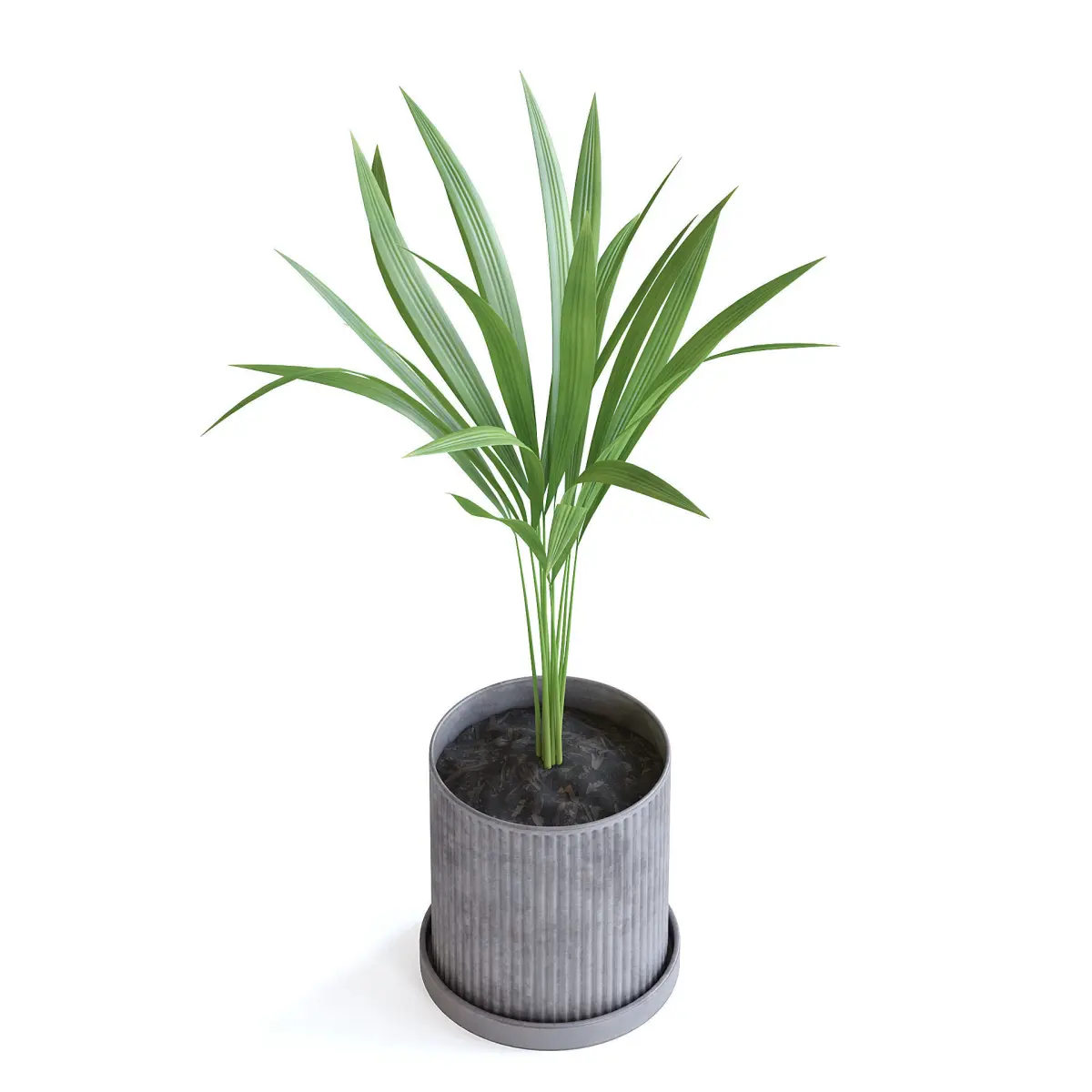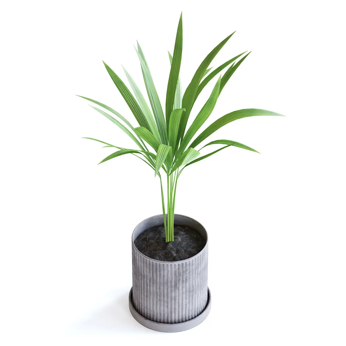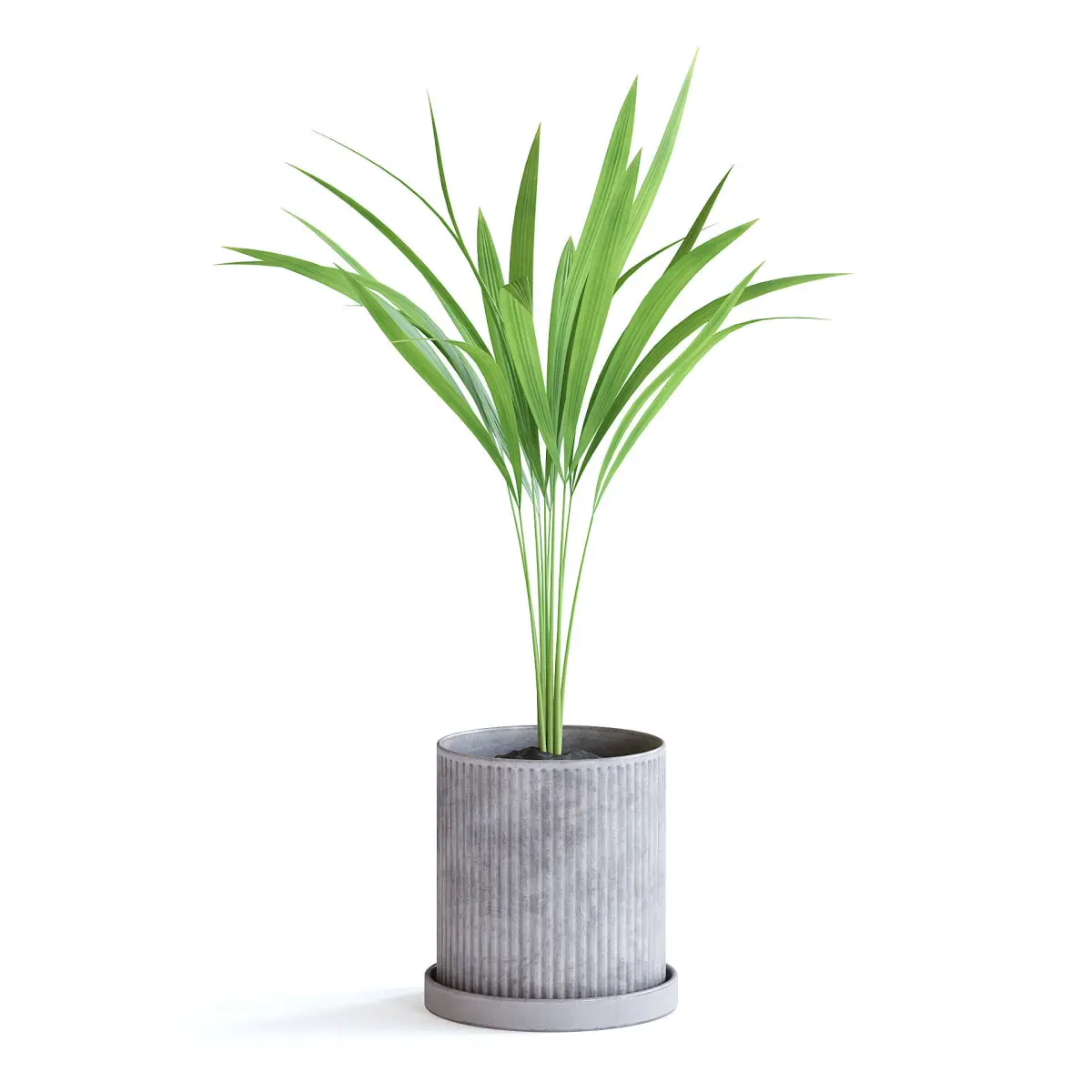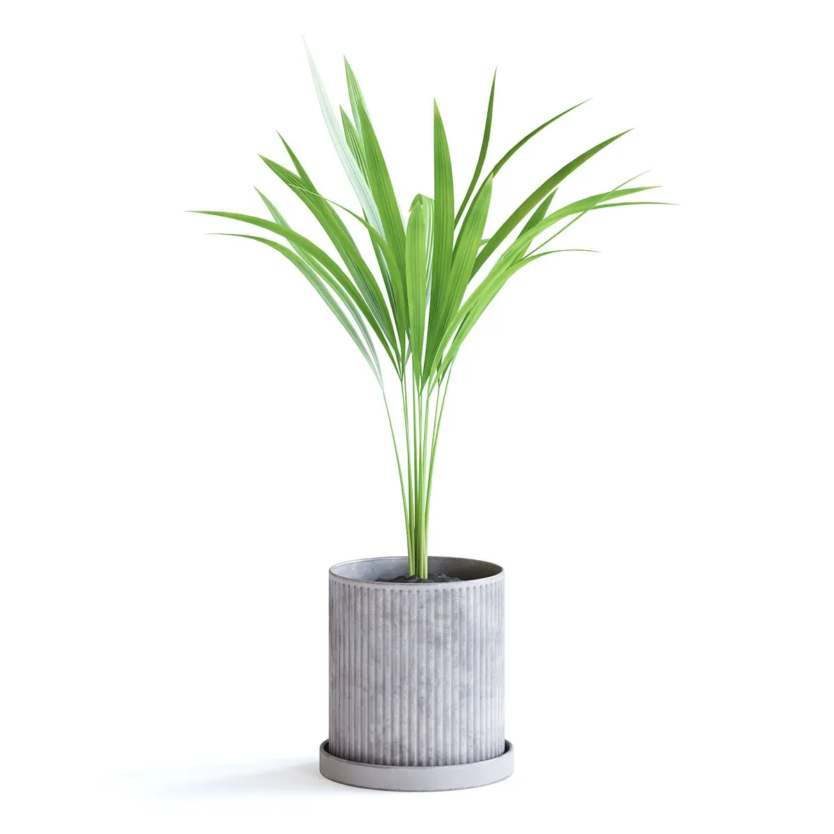 Areca palm in a conrete pot.