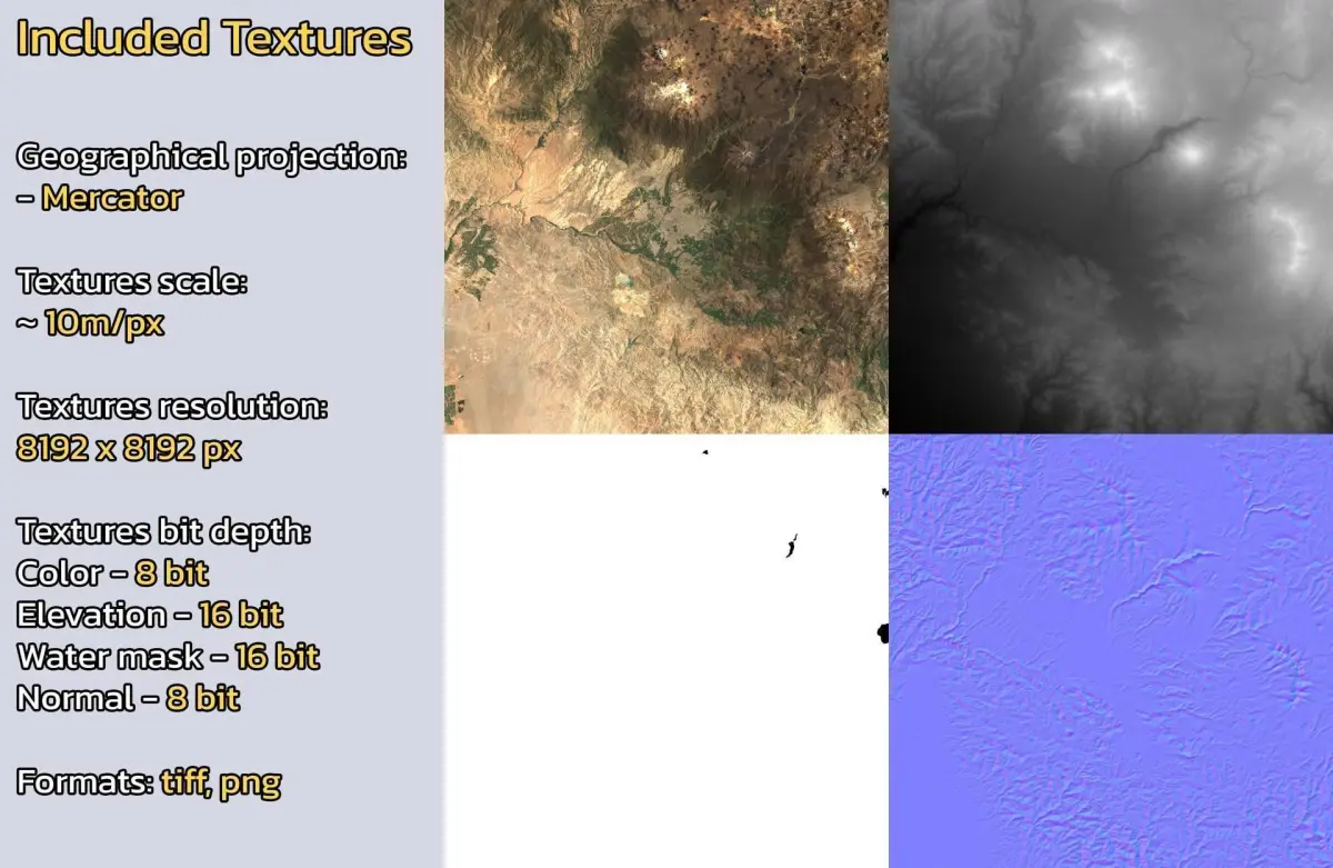 Warning: minor clouds/artifacts may be present on the diffuse color satellite texture due to the nature of the dataset. Check product images.