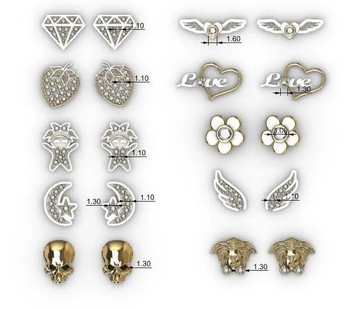 HomeCatalogAretes -Topitos para dama paquete de 10 -v- 3D print model