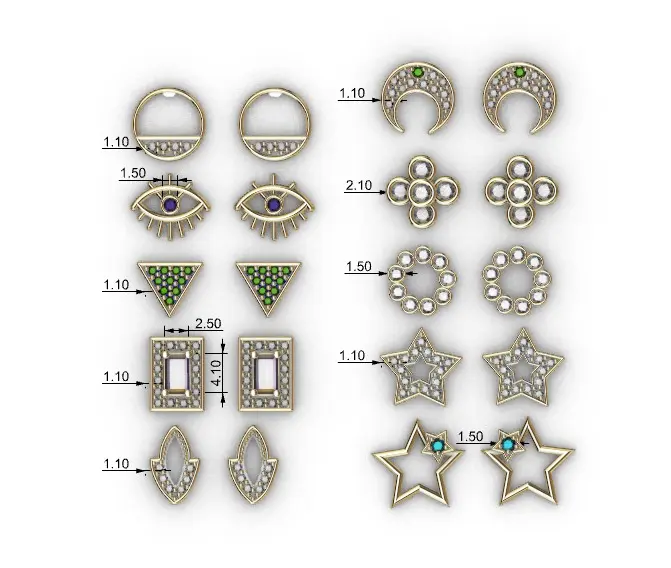 HomeCatalogAretes -Topitos para dama paquete de 10 -v- 3D print model