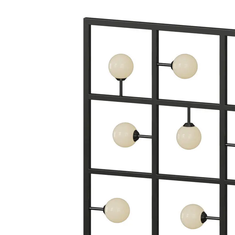 Squares is a wall or floor lamp produced by Atelier Areti, made of metal, with glass spheres. Squares is not only a lamp but above all a light sculpture, was designed to be simply leaning against a wall, or it can be mounted on the wall, creating a bright wall. Squares is a lamp made of 20 blown glass balls each with bulb 2W warm white LED, the structure is available in white or black. Light bulbs included.