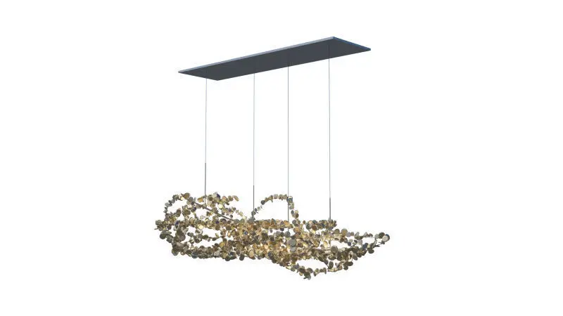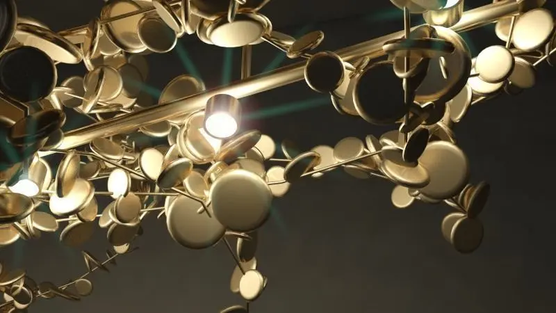 Inspiration to a Terzani suspension light, silver cloud. Argent consists of metal discs that have been meticulously shaped by hand . Once lit, the multiple, angled surfaces of the discs emanate a soft, shimmering glow. Orignal design: Design Dodo Arslan.
