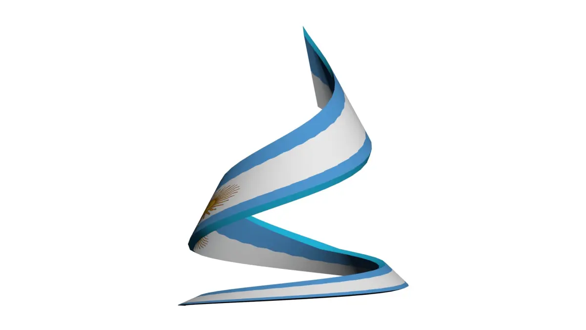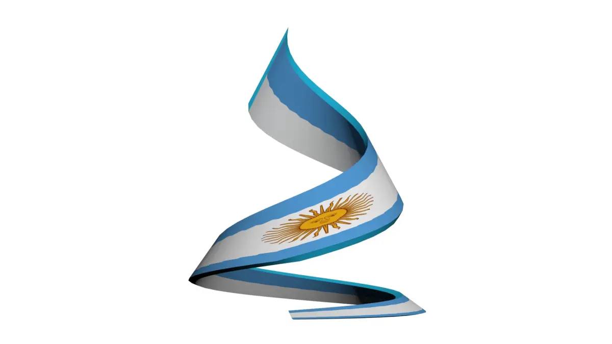 It features three stripes alternating sky blue, white and sky blue. Each stripe is 30 centimeters high. In the center stripe there is an emblem known as the Sun of May, a golden sun. The Argentine Republic, is a country in the southern half of South America. Argentina covers an area of 2,780,400 km2