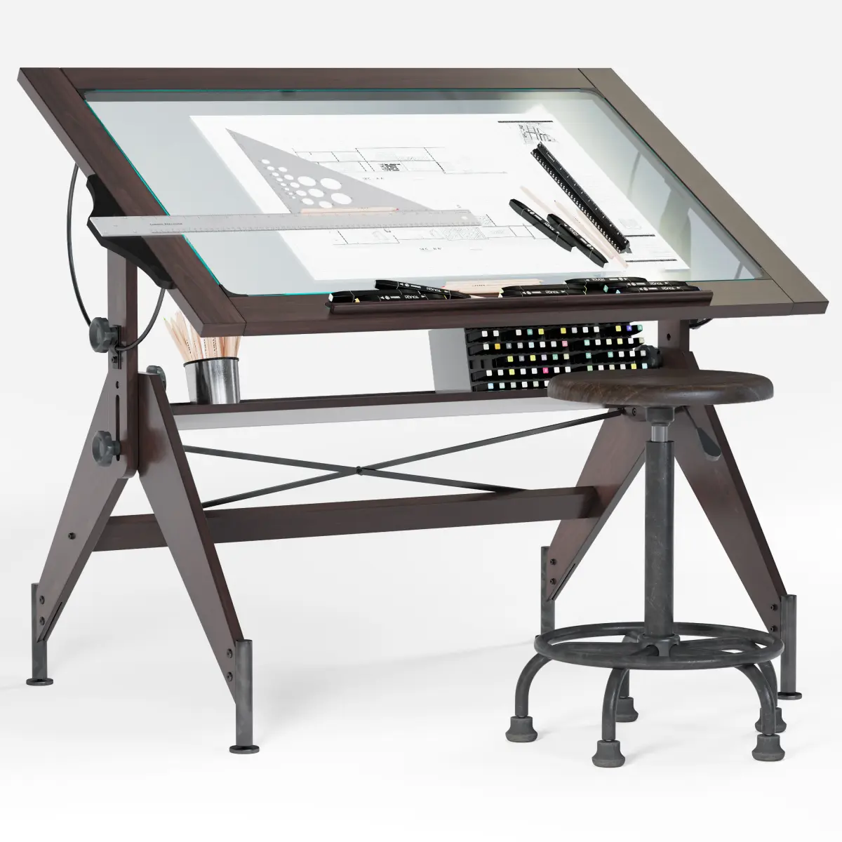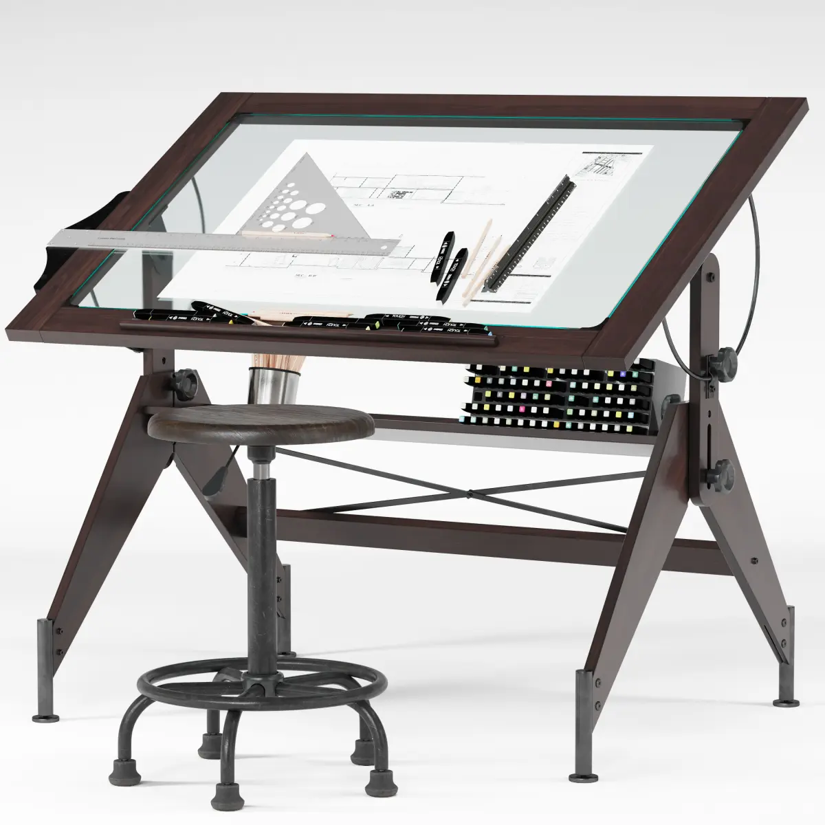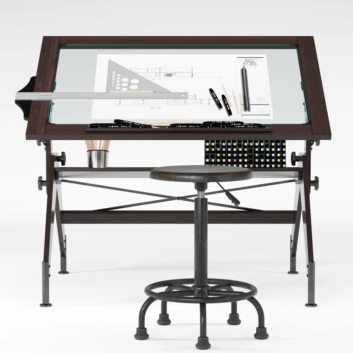 This set includes:1) Studio Designs Aries Wood and Glass Drawing Table in Dark Walnut – Item # 13310Product Link: https://studiodesigns.com/catalog/studio-designs/draftingtables/aries-glass-top-table-drkwal/