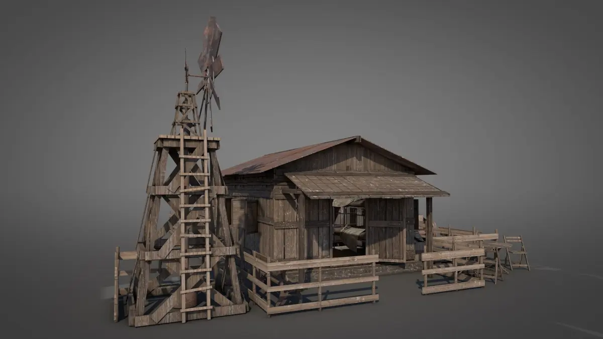 This model is the second version of my new series of desert shacks. This model is so detailed one with realistic textures on structure, roof and other objects. You must adjust the pivots on the front door, shed door and window shutters to open them properly.