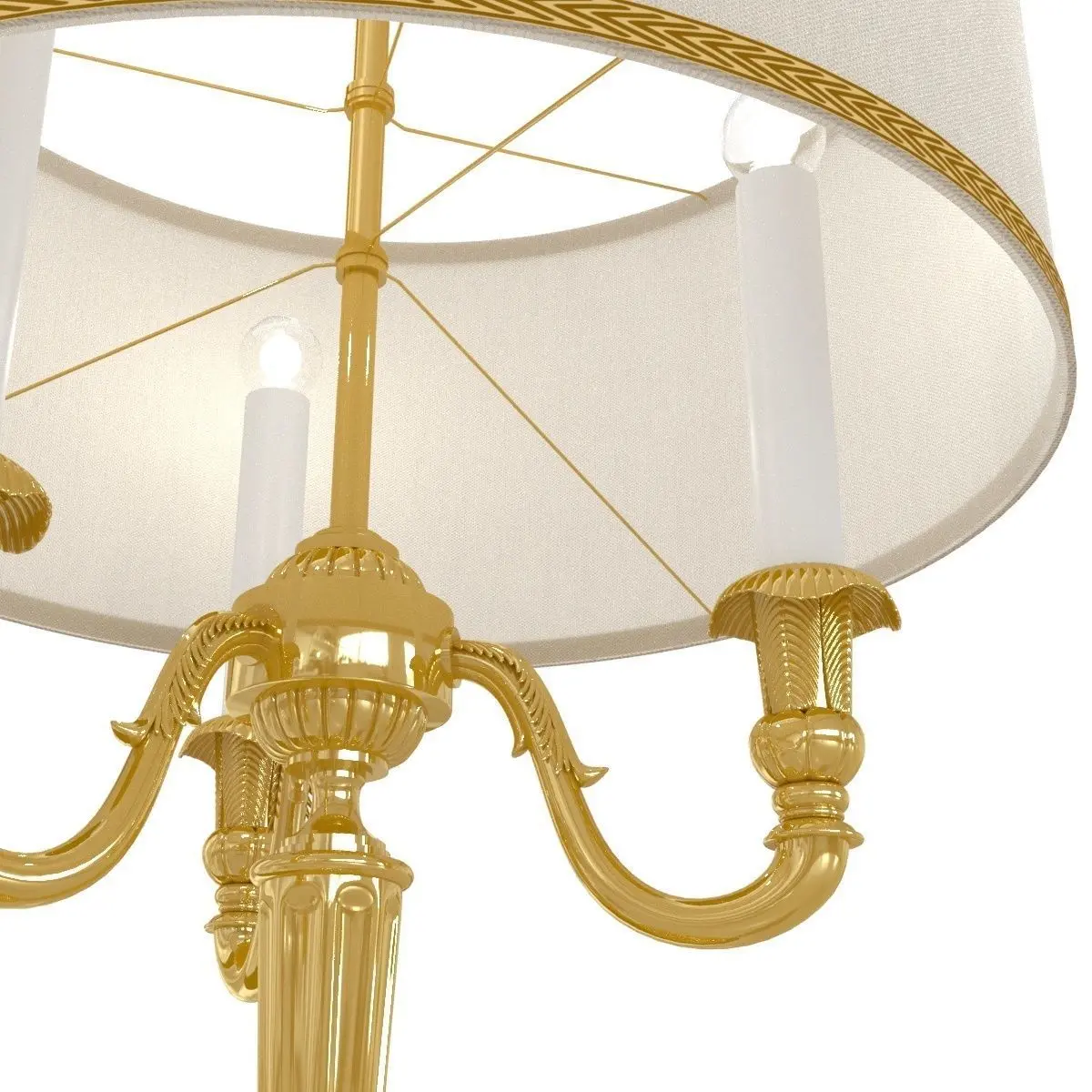Arizzi 723 table lamp in gold finish3 curved arms decorated floral leaf pattern bulbs candlesround beige lampshaderound metal baseclassic baroque roccoo style luxury louis Country ItalyBrand ArizziCollection 723Article 723/3 / LDiameter 420 mmHeight 780 mmBulb type E14Number of lamps 3Lamp power 42 WProtection degree IP20Bulbs included NoDimmer YesArmature color Antique french goldRebar material MetalShade color IvoryShade material TextileShape RoundItem Code 724-408-842The weight of those 4.7 kg