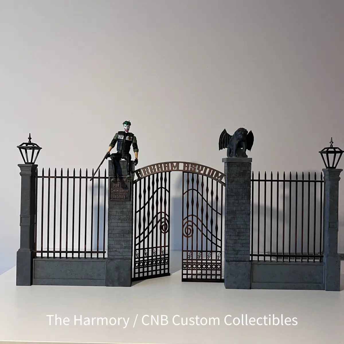This was modeled to fit with the McFarlane 7 inch figures. There is some space in the lanternpoles to hide some wiring for the LEDs.Awesome way to display your favorite Batman figures!