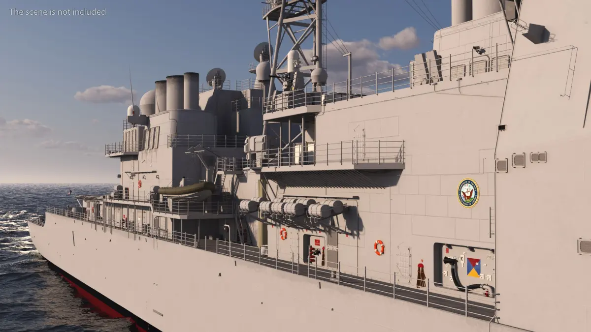 Arleigh Burke-Class Destroyer is a 3d model of a modern naval warship, renowned for its advanced technology and multi-mission capabilities, serving as a critical asset in maritime defense.