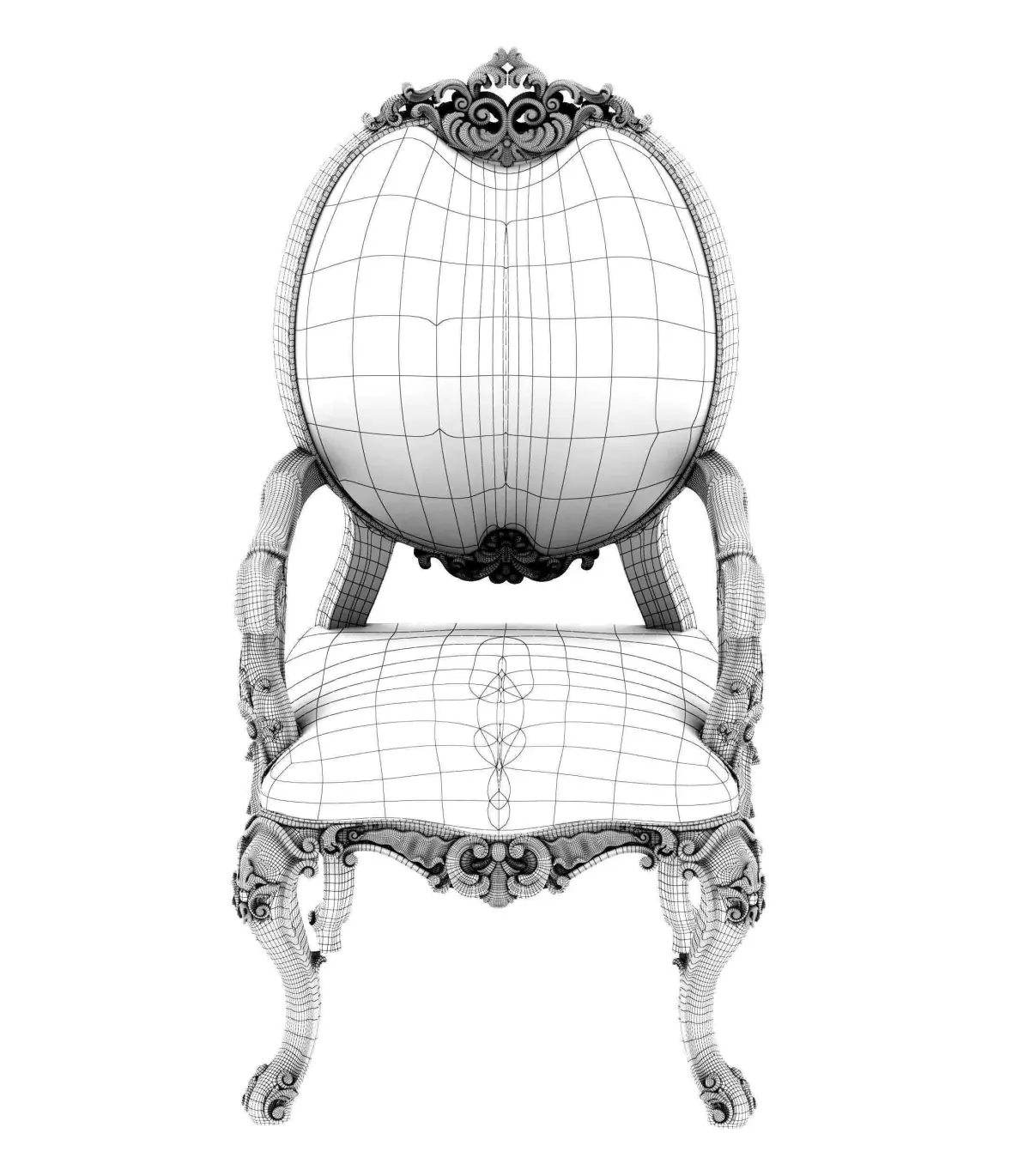 A printed chair that combines old and modern styles designed for industrial production in natural dimensions. It can be printed or output on a CNC machine.
