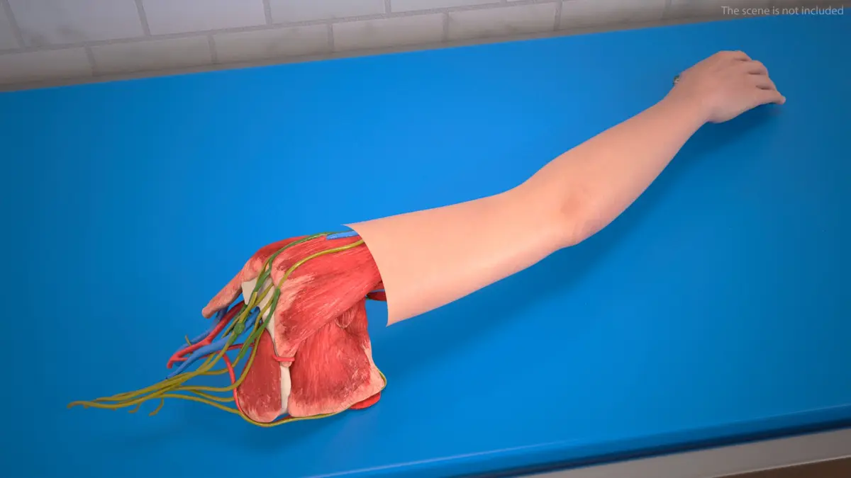 Arm Skin and Anatomy Asian Female is a 3d model of detailed representation of the anatomical structure and skin characteristics of the arms of an Asian female.