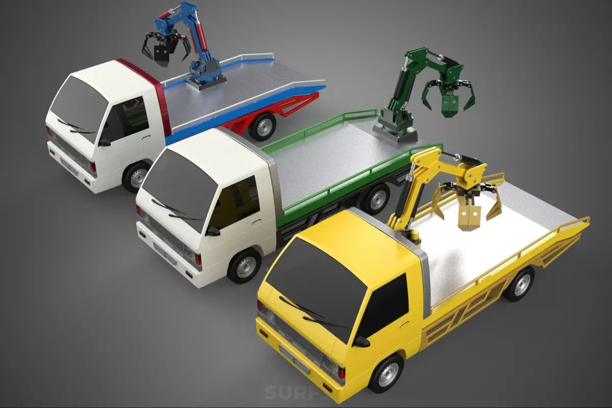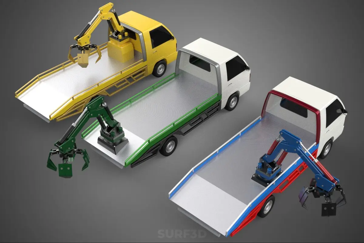 Applications for such vehicles are diverse, including landscaping (moving trees, rocks, soil), arboriculture (loading logs and brush), utility work (handling poles or materials), light construction (site cleanup, moving smaller material loads), property maintenance (clearing debris, moving heavy items), and various tasks requiring the ability to lift, move, and place items in locations accessible by a pickup truck. Their advantage lies in their mobility, road legality, and capacity to perform mechanical work where larger, less mobile equipment is impractical or unavailable, bridging the gap between manual labor and dedicated heavy machinery.