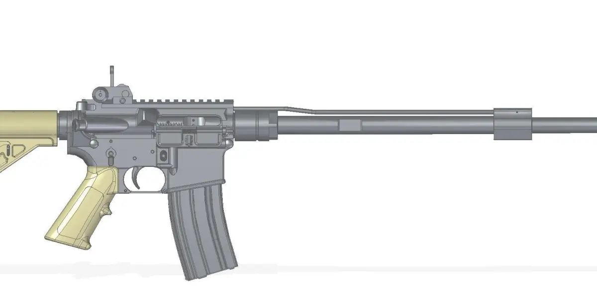 Full assembled model of AR-15 rifle with 30 round mag and 5,56 mm Nato bullet.