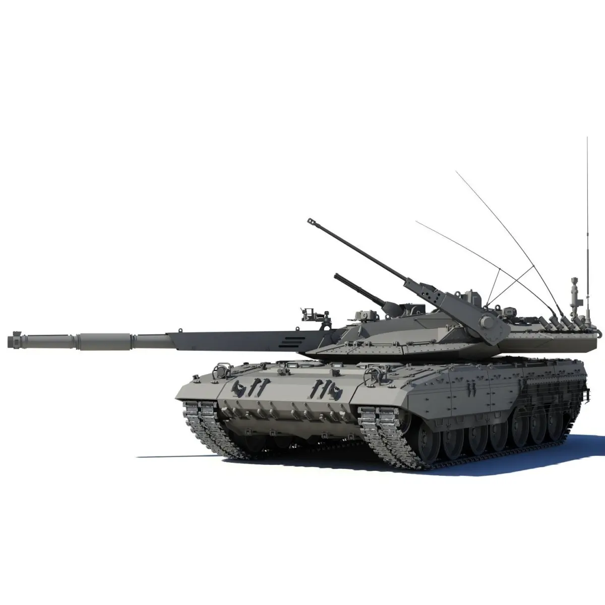 T-14 'Armata' - the concept of the new Russian main battle tank, using a tracked platform ' Armata ', with armor for the crew capsule, radar and active protection.Extremely detailed, highly accurate in 1:1 scale, with fully detailed running gear and machine guns.Moving parts such as the tower and arms , the made separately for the possibility of creating animation. There is no need for third-party plugin or something else. Light, materials and visualization is done in mental ray which is integrated into the program 3ds Max, so you will not need third-party plug-ins.
