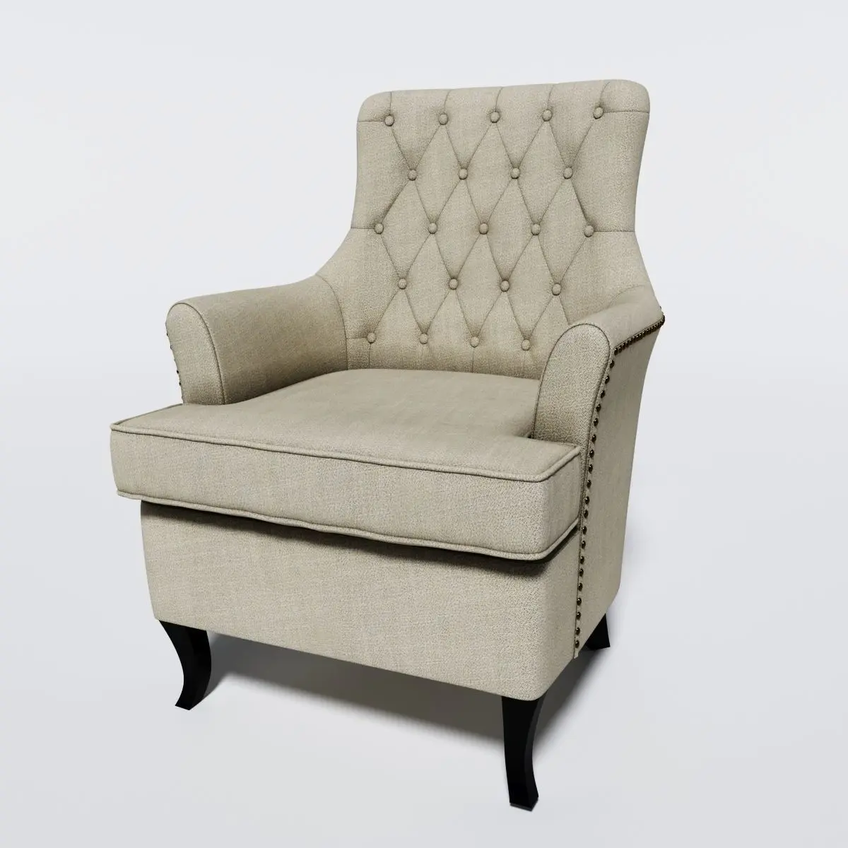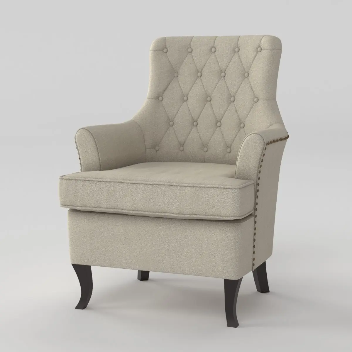 armchair GenesisThe file is created in 3Ds Max 2013 and can be opened in any compatible packages.Archive includes files with the extensions .max,.obj,.fbx and .stl with Corona materials.The armchair is super-stylish and features a delightful flax like fabric that is comfy and smooth, button back upholstery gives things a traditional twist and the dark wood curved legs come together to add a feminine touch. This kind of charm is perfect for a home where subtle tones and peace are high on the list of priorities. The light grey fabric is great with any colour scheme too.length 1000width 740height 800High quality model. Detailed enough for close-up renders