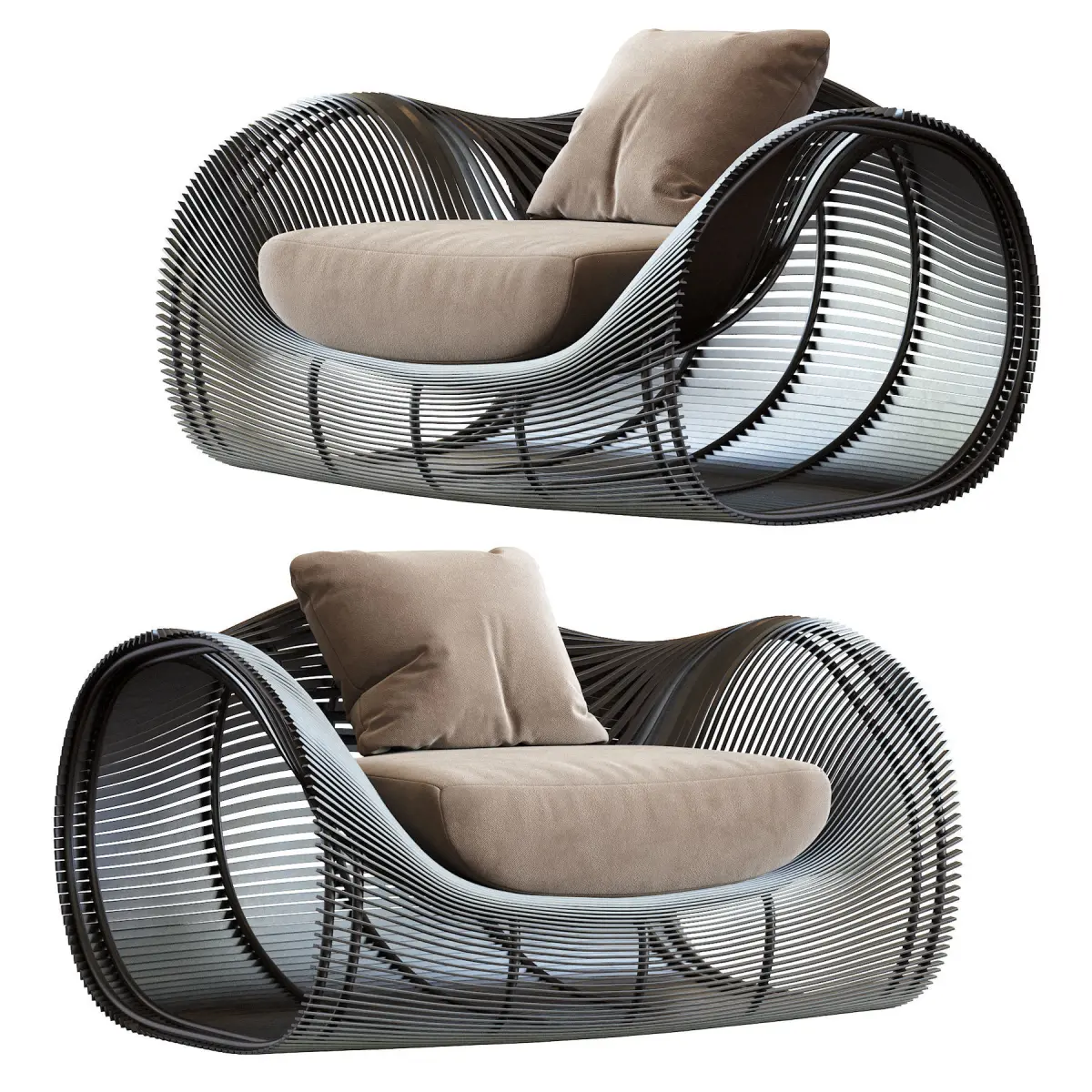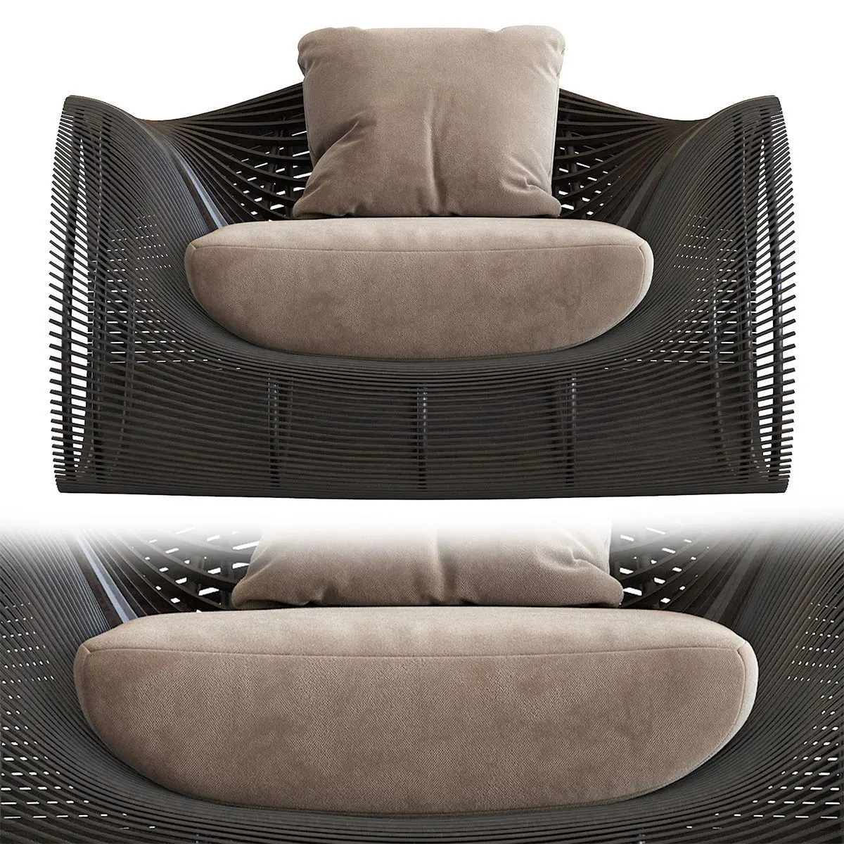 Product characteristicsSeat height: 42 cmDepth: 103 cmWidth: 126 cmHeight: 70 cmFrame Material: Rattan, NylonUpholstery material: VelorUpholstery material code: Naranja CamelUpholstery color: Light brownFrame color: Dark brownCollection: LolahBarcode: 2000983240866One of the basic pieces of furniture, a chair is a type of seat. Its primary features are two pieces of a durable material, attached as back and seat to one another at a 90°-or-slightly-greater angle, with usually the four corners of the horizontal seat attached in turn to four legs—or other parts of the seat's underside attached to three legs or to a shaft about which a four-arm turnstile on rollers can turn—strong enough to support the weight of a person who sits on the seat (usually wide and broad enough to hold the lower body from the buttocks almost to the knees) and leans against the vertical back (usually high and wide enough to support the back to the shoulder blades). The legs are typically high enough for the seated person's thighs and knees to form a 90°-or-lesser angle.[1][2] Used in a number of rooms in homes (e.g. in living rooms, dining rooms, and dens), in schools and offices (with desks), and in various other workplaces, chairs may be made of wood, metal, or synthetic materials, and either the seat alone or the entire chair may be padded or upholstered in various colors and fabrics.