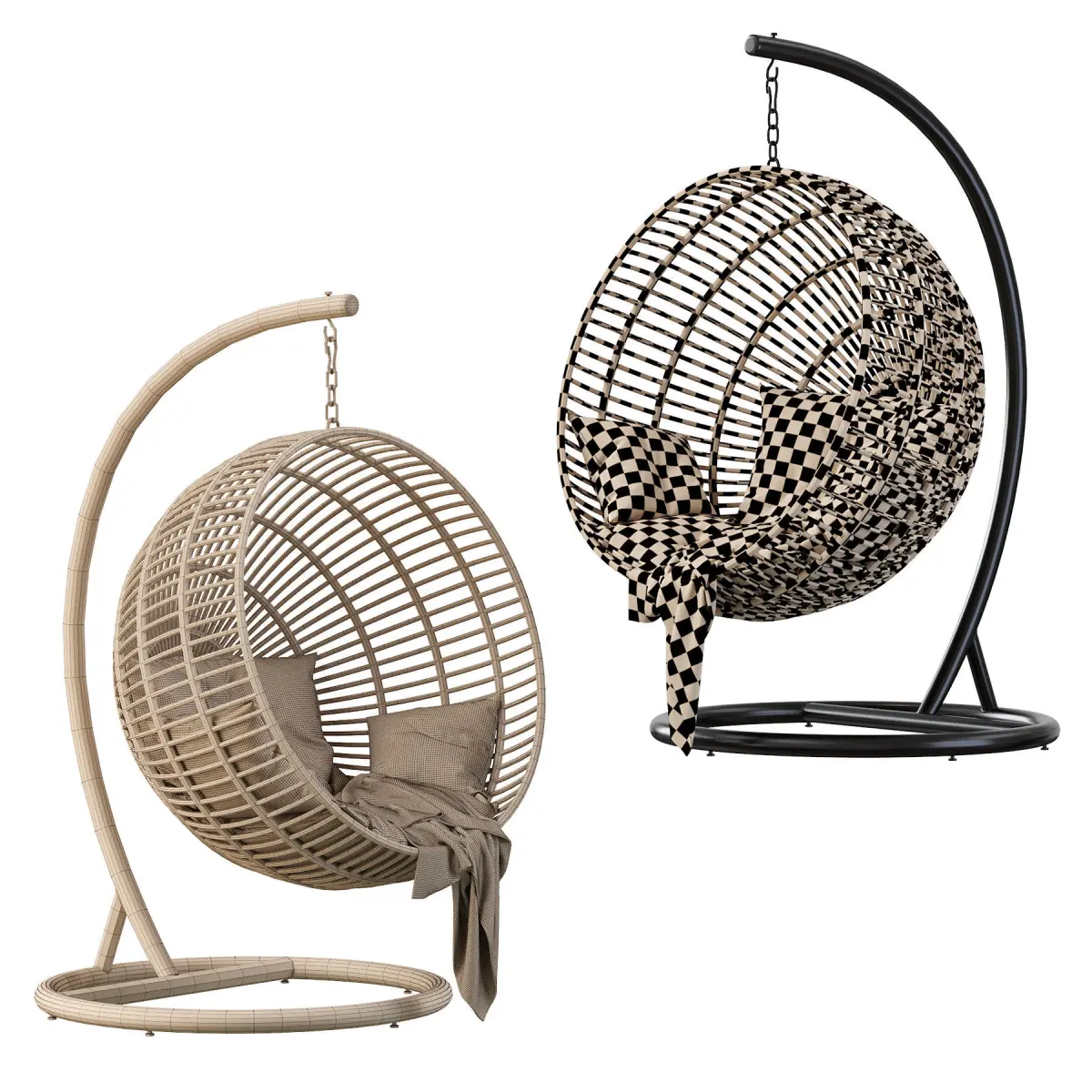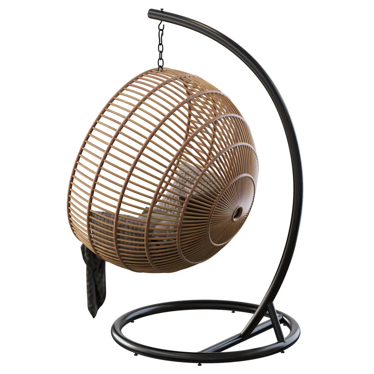 Caractéristiques : • Structure en métal recouvert de rotin tressé • Arceau et crochet en métal • 1 coussin d'assise • 1 coussin de dossier déhoussable • Coussins garnis de flocons de mousse et fibres polyester avec enveloppe en 100% coton • Poids maximal supporté : 120 kg