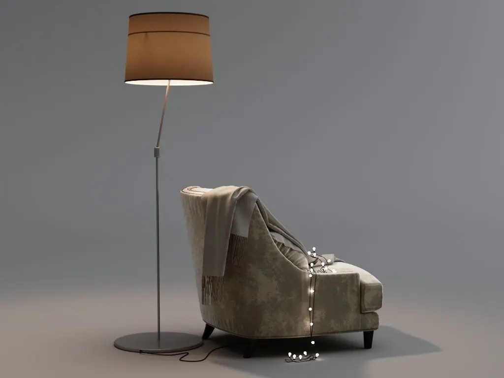 The size of the chair (WxDxH) 864x972x885 mm The size of the floor lamp (WxDxH) 640x640x1835 mm