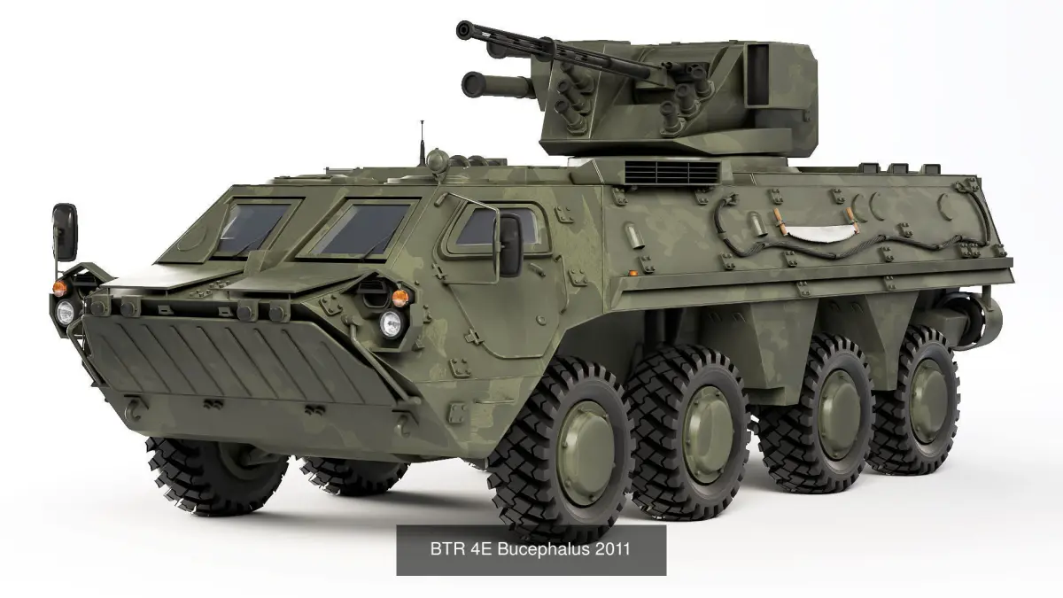A small collection of equipment of the Armed Forces of Ukraine. The collection includes: KrAZ Spartan 2014, Humvee Military M242 Bushmaster 1989, KrAZ 5233 VE 2010, Tank T-64 BV 2017, BTR 4E Bucephalus 2011, BTR Otaman-3 2019.