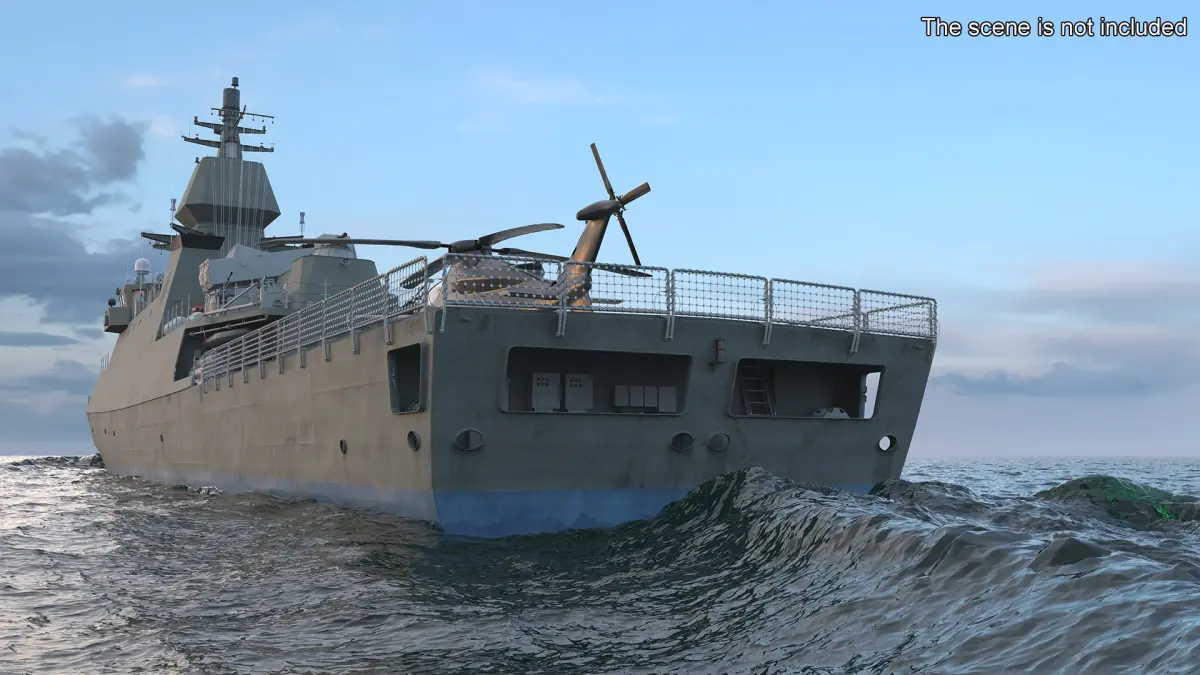 Armed Warship Naval with Combat Helicopter is a high quality, photo real 3d model that will enhance detail and realism to any of your rendering projects. The model has a fully textured, detailed design that allows for close-up renders, and was originally modeled in 3ds Max 2020 and rendered with V-Ray. Renders have no postprocessing!